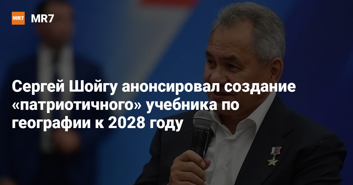Русское географическое общество (РГО) планирует выпустить новый учебник географии для школ России к 2028 году. По словам президента РГО Сергея Шойгу, учебник будет принципиально обновлённым, ориентированным на формирование патриотизма и глубокого понимания страны у школьников. Об этом 20 октября Шойгу сообщил в интервью изданию ТАСС.