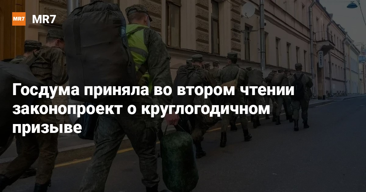 Депутаты Госдумы приняли во втором чтении законопроект, предусматривающий переход к круглогодичному призыву на военную службу. Поправки в закон «О воинской обязанности и военной службе» предполагают, что теперь мероприятия, связанные с призывом, будут проводиться не два раза в год, а постоянно — с 1 января по 31 декабря, сообщает ТАСС 20 октября.