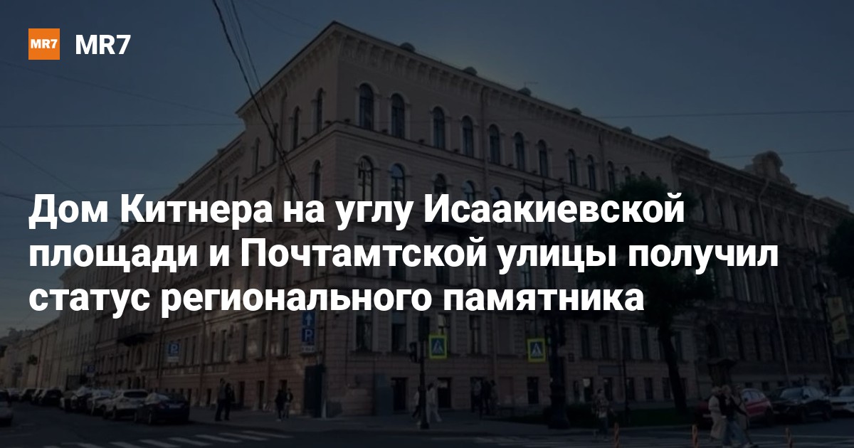 Петербургский комитет по охране памятников внес в единый реестр объектов культурного наследия регионального значения доходный дом Китнера (Почтамтская улица, 1), о чем 23 октября сообщается на сайте КГИОП.