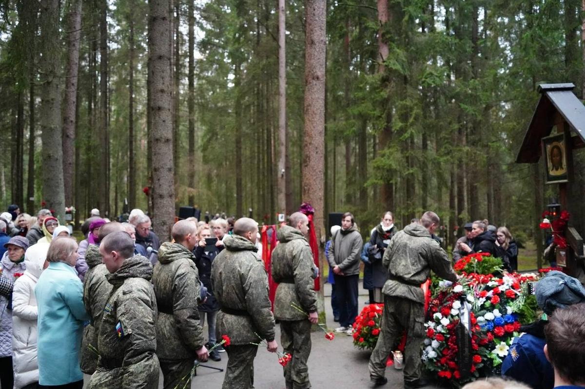 Тем временем бьёт полдень. Всё готово к церемонии. Её ведёт руководитель центра «Возвращённые имена» при Российской национальной библиотеке Анатолий Разумов. Напоминает историю пустоши и объявляет минуту молчания. После этого к Поклонному кресту возлагают цветы от правительства города, ЗакСа, администрации районов, общественных организаций, землячеств и консульств. Служат панихиду.