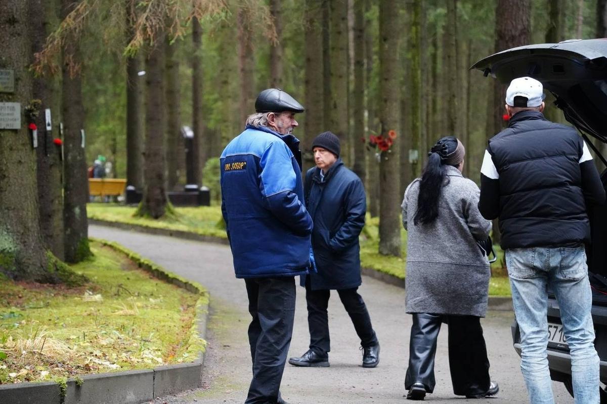 Присутствуют сегодня и авторы памятника «Молох тоталитаризма» — того самого, который стоит у входа на кладбище, на другой стороне дороги. Огромное металлическое чудище, поглощающее человека, которое кажется ещё более зловещим сегодня от затянутого тучами неба.