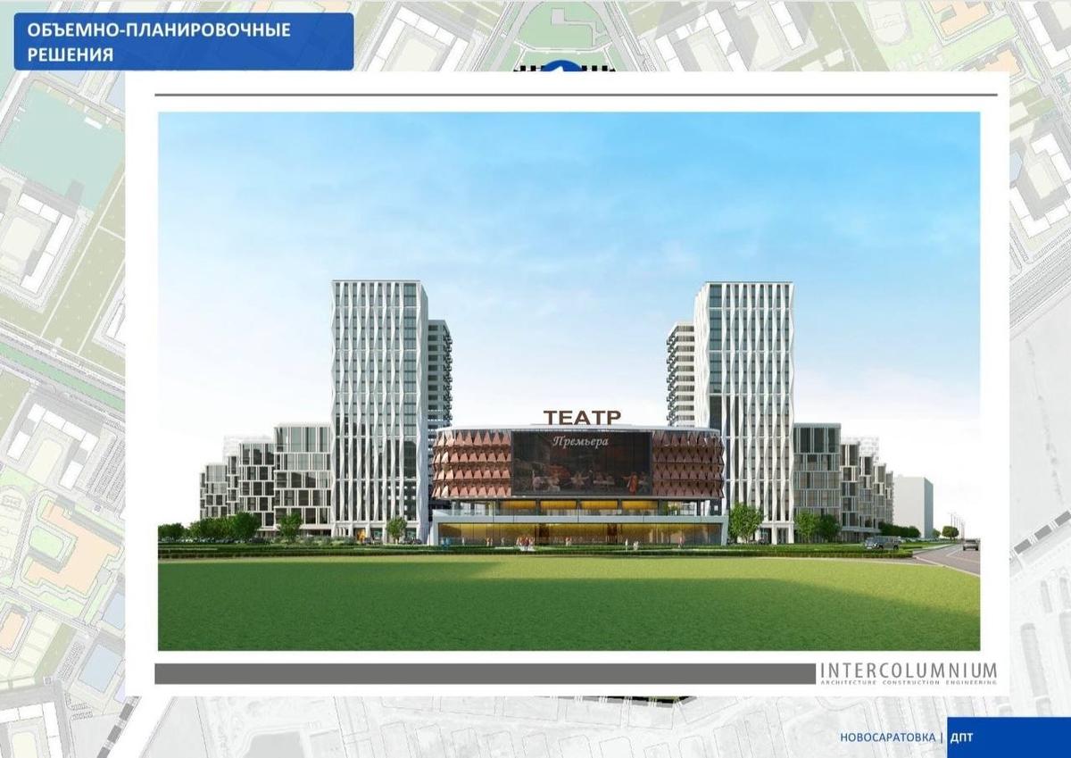 В квартале 05-03 Новосаратовки появится новый центр притяжения с театром, центральной площадью и общественными пространствами. Проект стал результатом первого в регионе архитектурного конкурса, по итогам которого была сформирована концепция доминантной застройки.