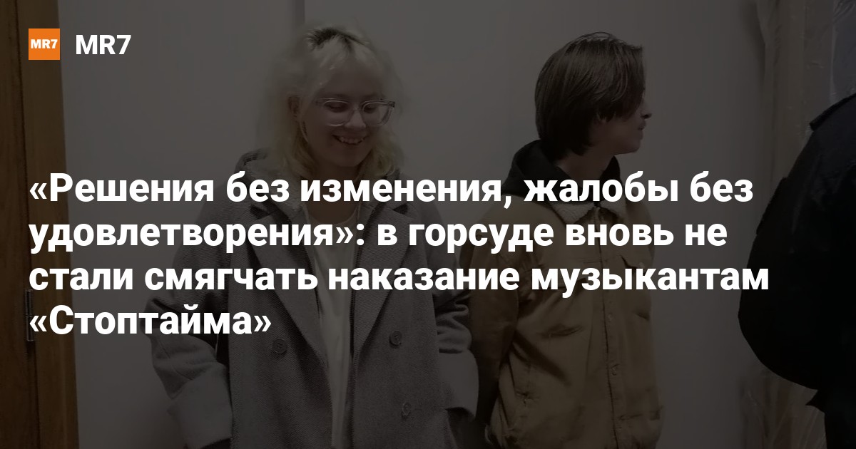 Заседания по четырём жалобам на постановления об арестах музыкантов группы «Стоптайм» прошли в рабочую субботу, 1 ноября, одно за другим у судьи Евгения Хворова. Результаты всех были идентичны — в жалобах отказано, решения райсудов не изменены.