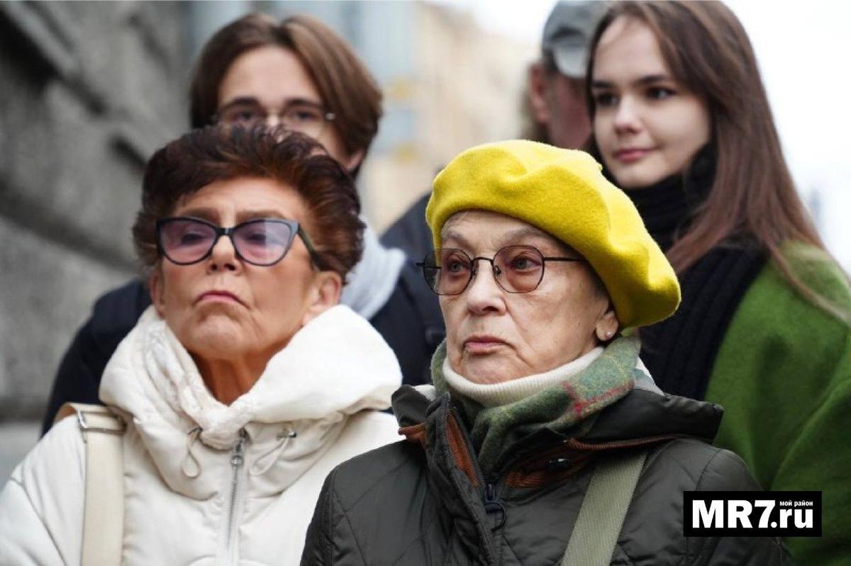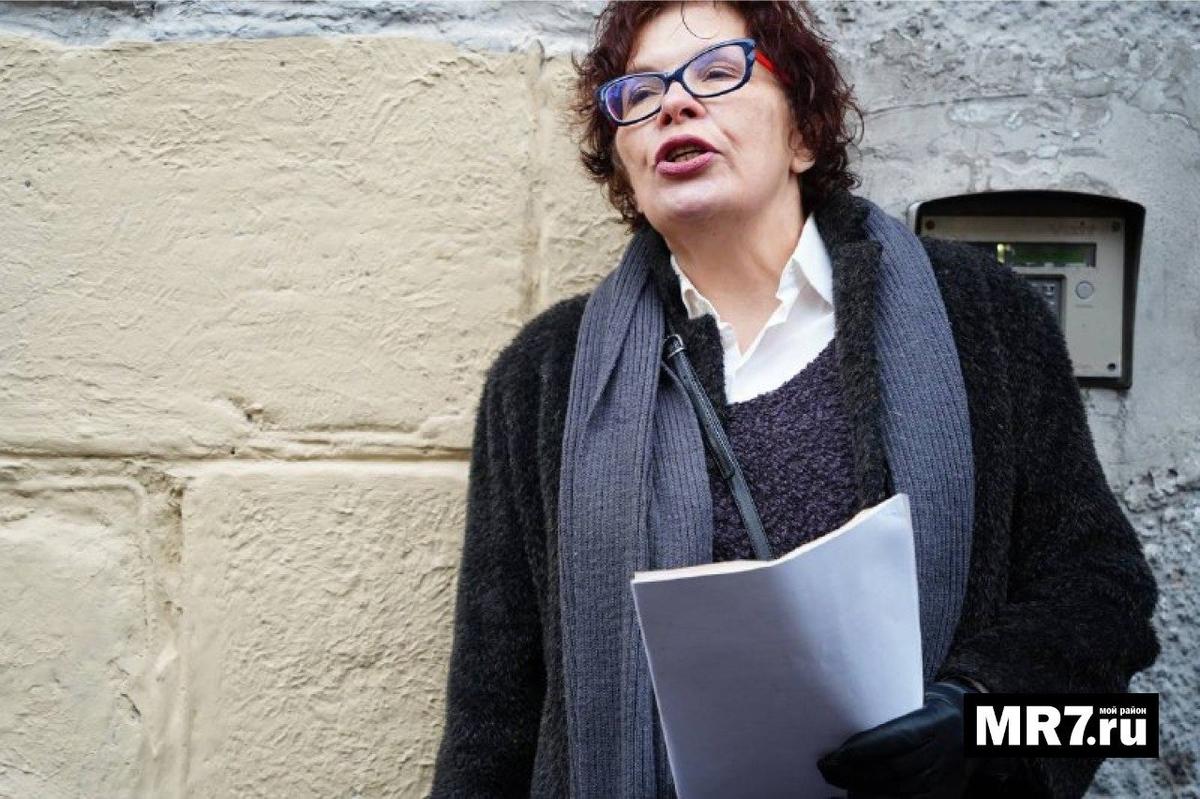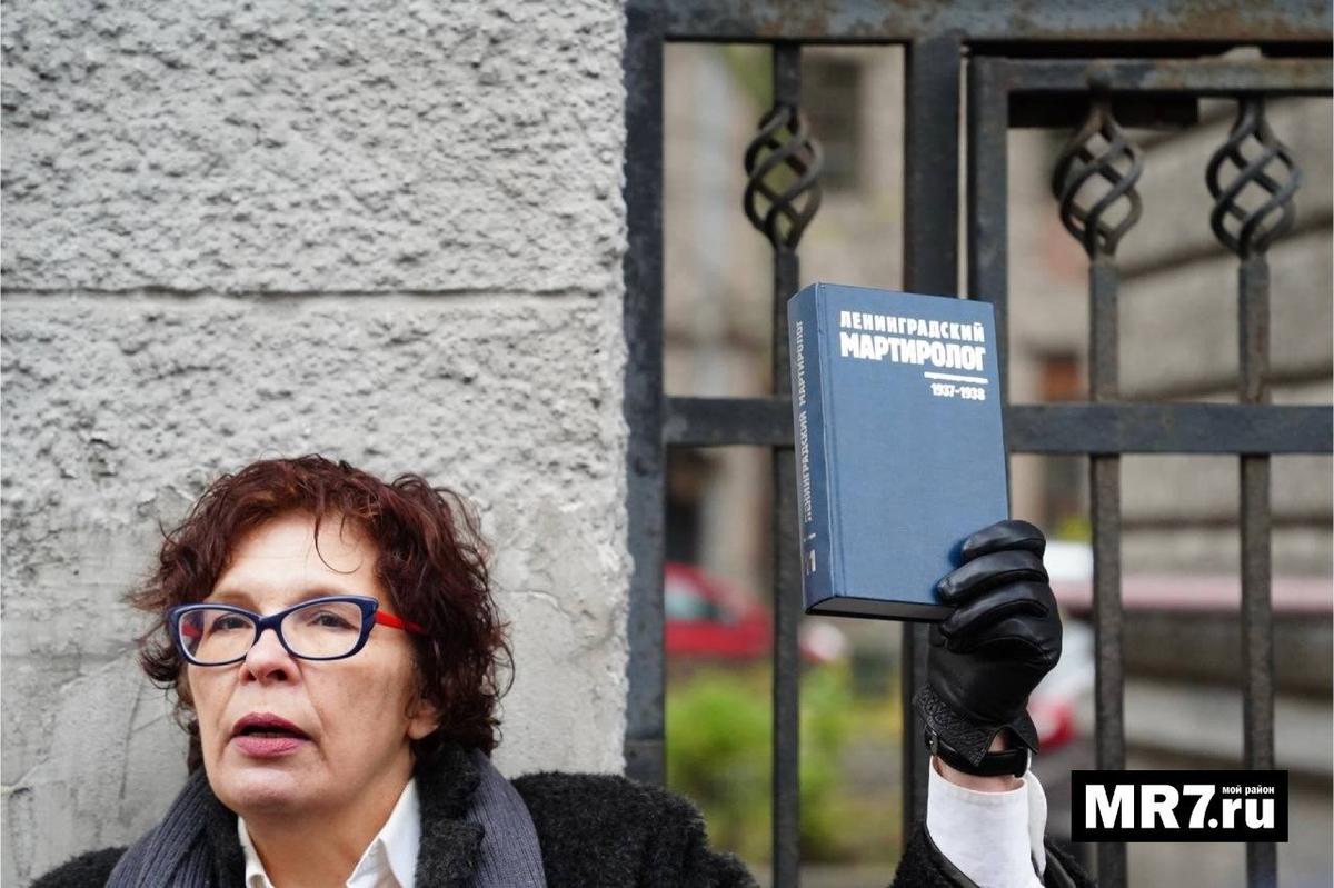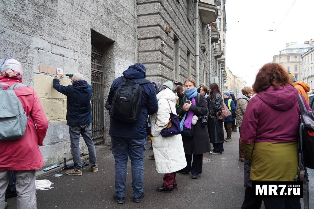 Жительница дома № 21 по Английскому проспекту устанавливает табличку в память о Елене Комендантовой. Фото: Павел Борисенко / MR7