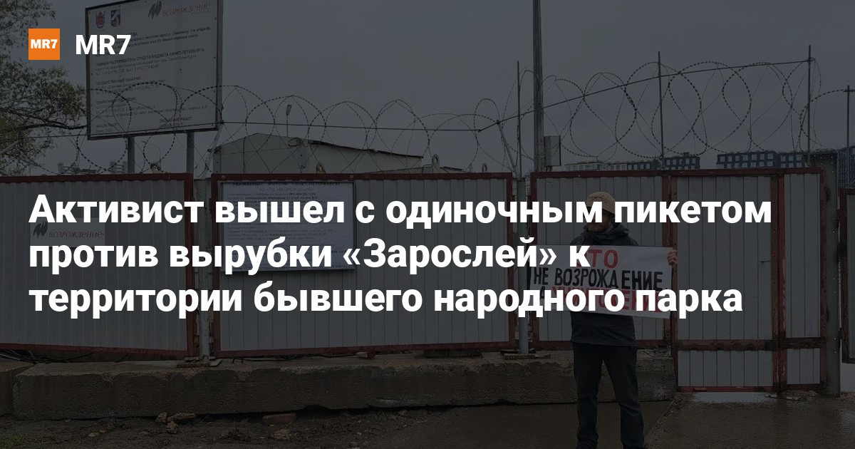В Петербурге активист и спортсмен Дмитрий Васильев 3 ноября провёл одиночный пикет в защиту парка «Заросли» на Малой Неве. На опубликованных в телеграм-канале «Заросли — Парк на Малой Неве» фотографиях Васильев стоит с плакатом «Это не возрождение, а уничтожение».