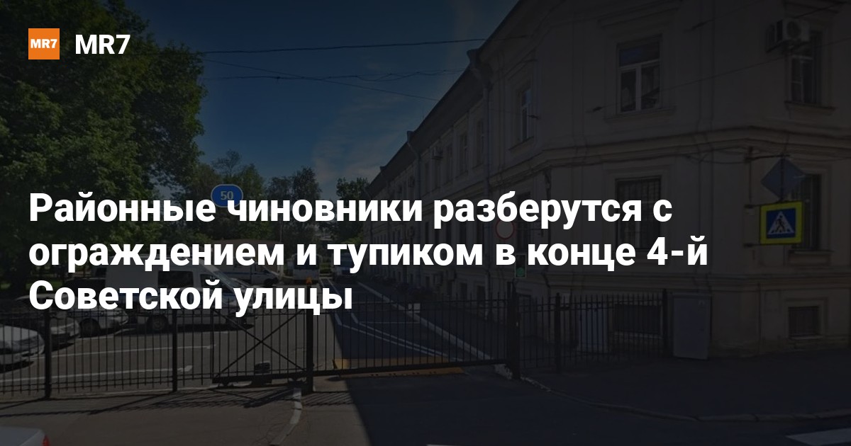 Администрация Центрального района проверит законность ограждения, которым искусственно прерывается и заканчивается 4-я Советская улица в месте ее пересечения с Мытнинской улицей. Препятствие мешает напрямую зайти в дальнюю часть Овсянниковского сада. Чиновники также намерены решить судьбу установленного здесь же шлагбаума, о чем 5 ноября пишет издание «Канонер» со ссылкой на замглавы районной администрации Дмитрия Бурдова.
