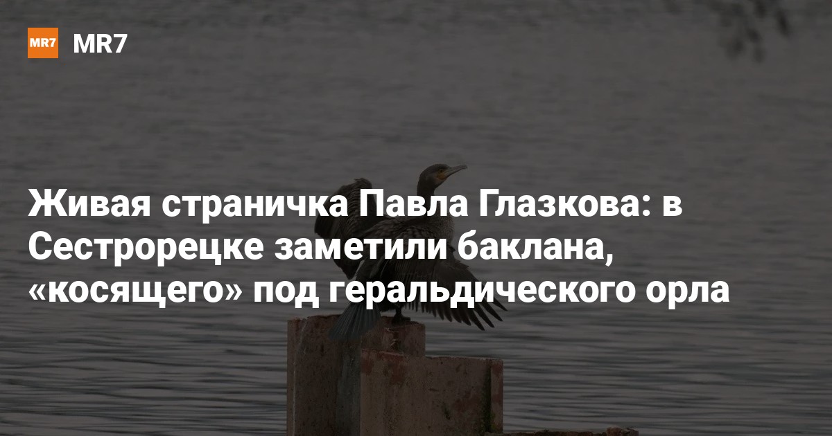 Гуляющие по Сестрорецку в первую декаду ноября имеют шанс встретить птицу, носящую название большой баклан и в момент разведения крыльев удивительно похожую на гербовую фигуру — геральдического орла. Сходство заприметил биолог Павел Глазков, посвятивший этим бакланам 6 ноября новый пост в своем блоге. Птицу он увидел отдыхающей на пруду после рыбалки.