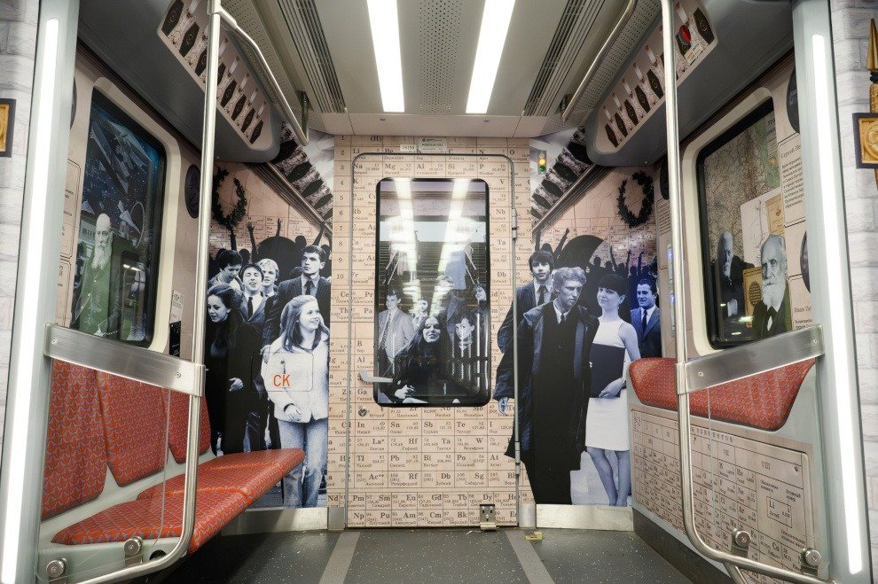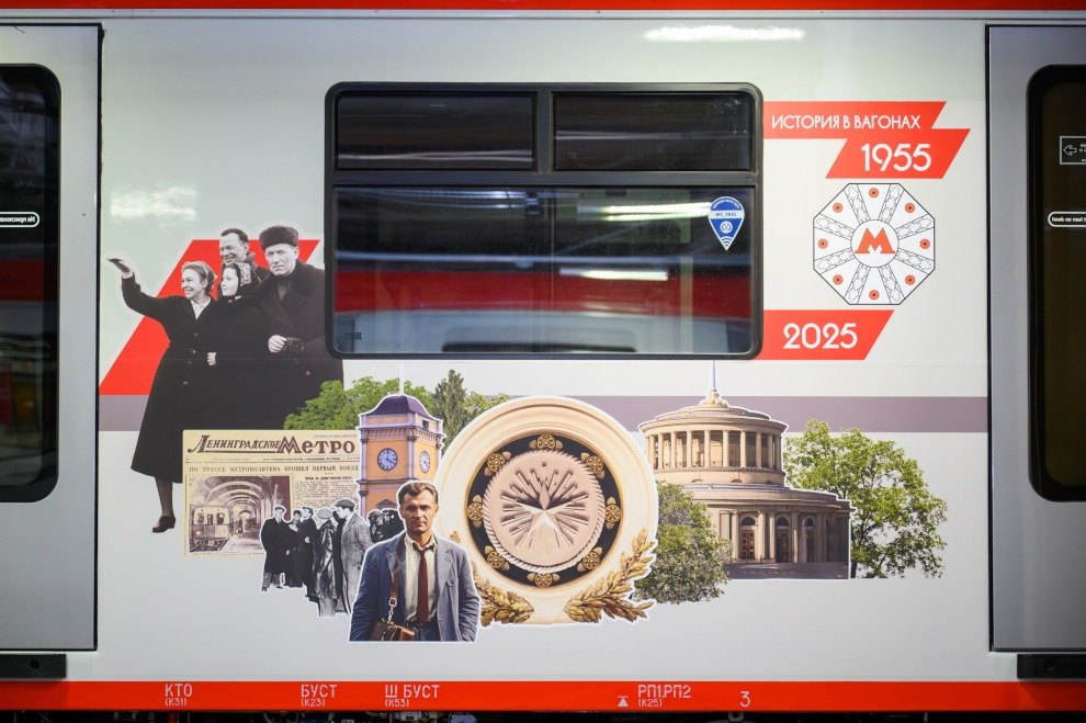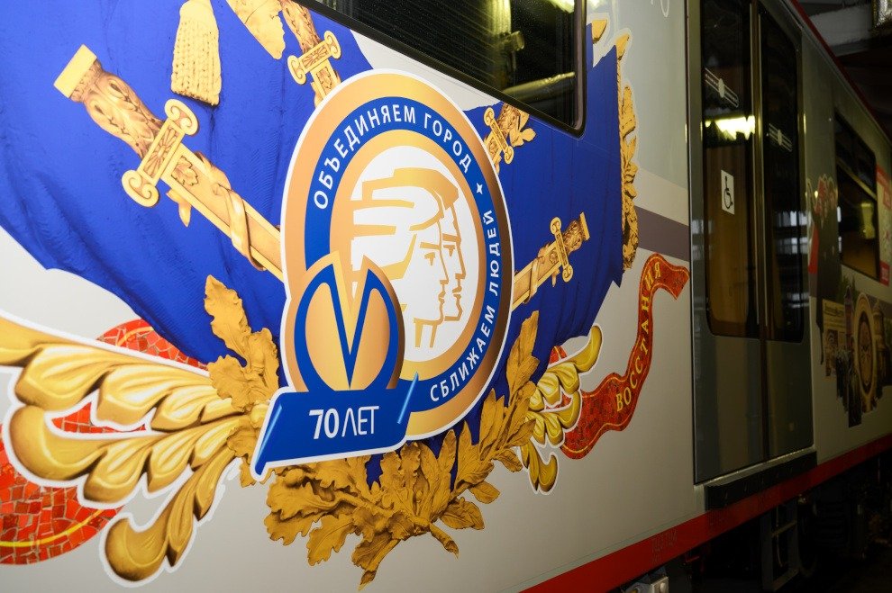 Первый из двух поездов — совместный проект города и компании-изготовителя «Трансмашхолдинг» — чиновник уподобил произведению искусства. Каждый из его вагонов посвящен одной из восьми первых станций, введенных в эксплуатацию в 1955 году. Украшены архивными изображениями и иными праздничными деталями оформления вагоны будут и снаружи, и внутри.