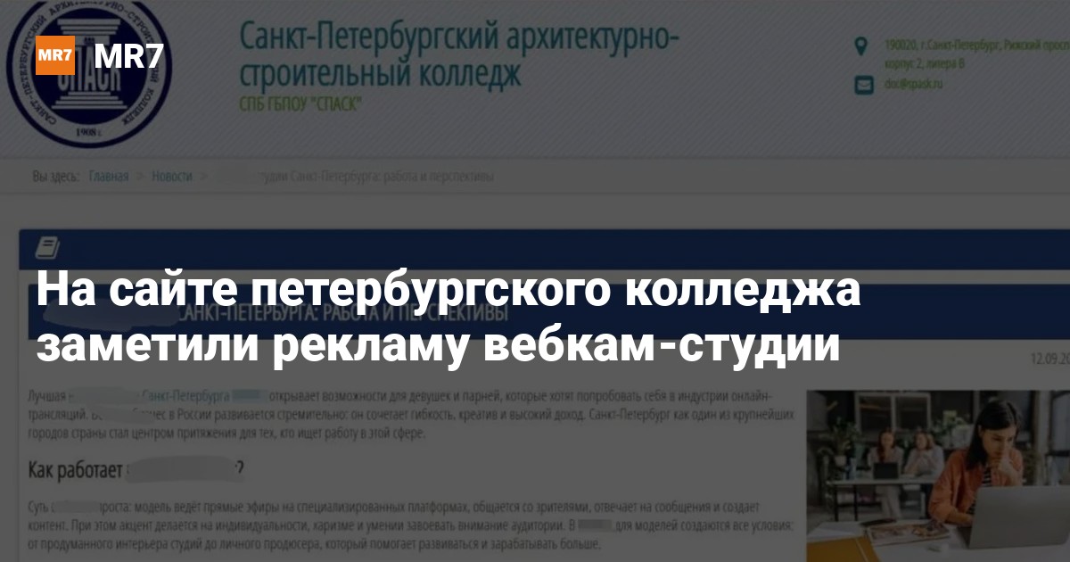 Пользователи обнаружили на официальном сайте Петербургского архитектурно-строительного колледжа 7 ноября примерно в 10:00 необычное объявление — рекламу вебкам-студии, названной «лучшей в городе». В тексте предлагались «быстрый карьерный рост», «бесплатное такси» и «помощь с жильём».