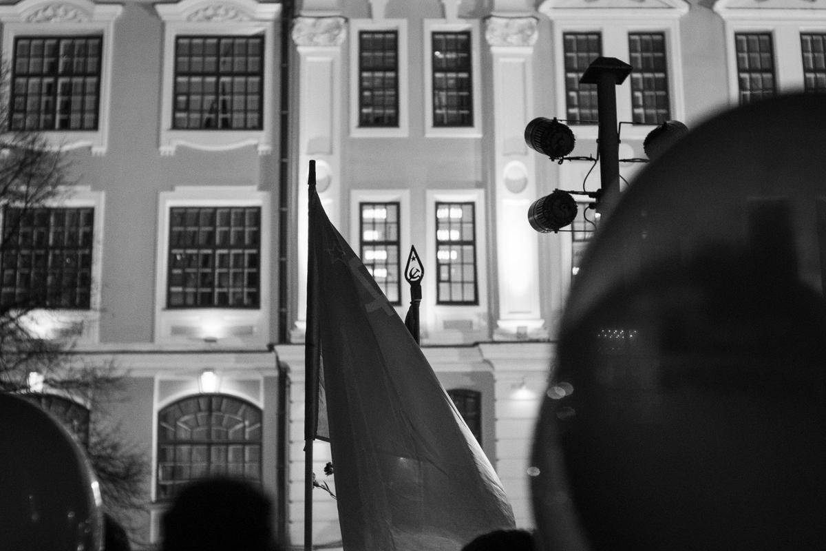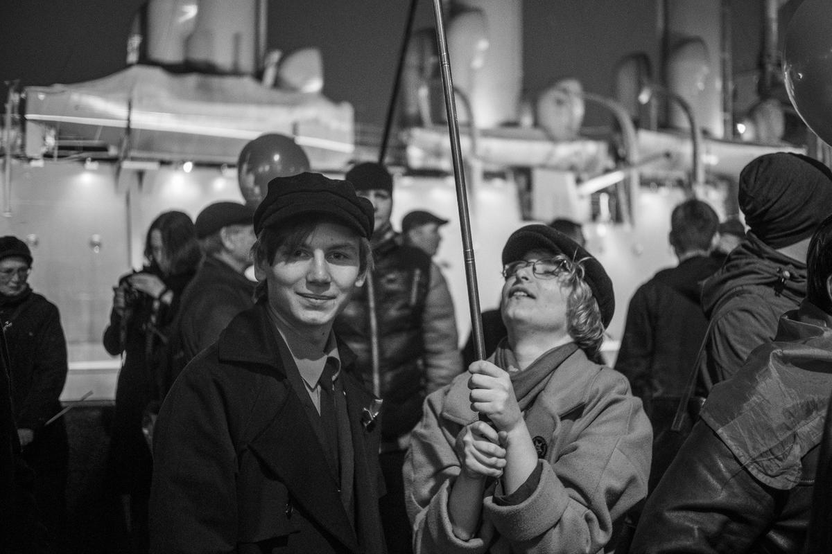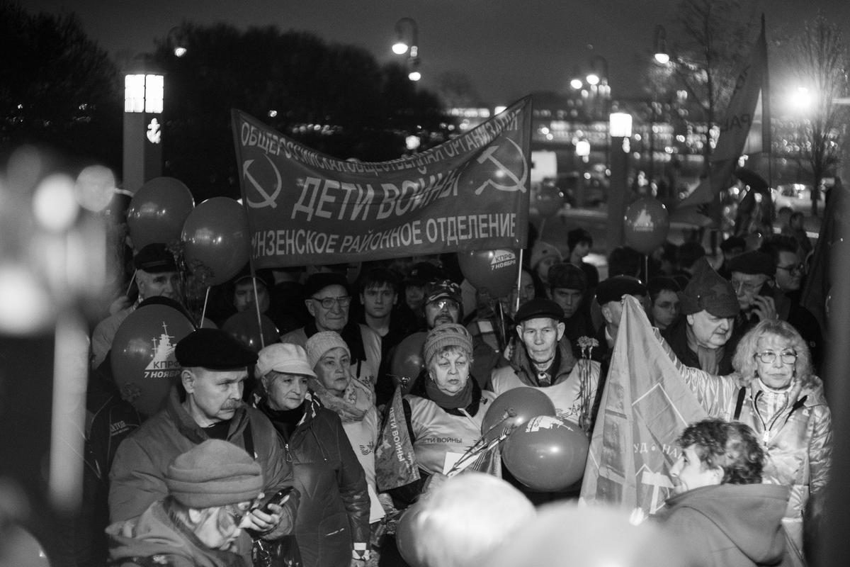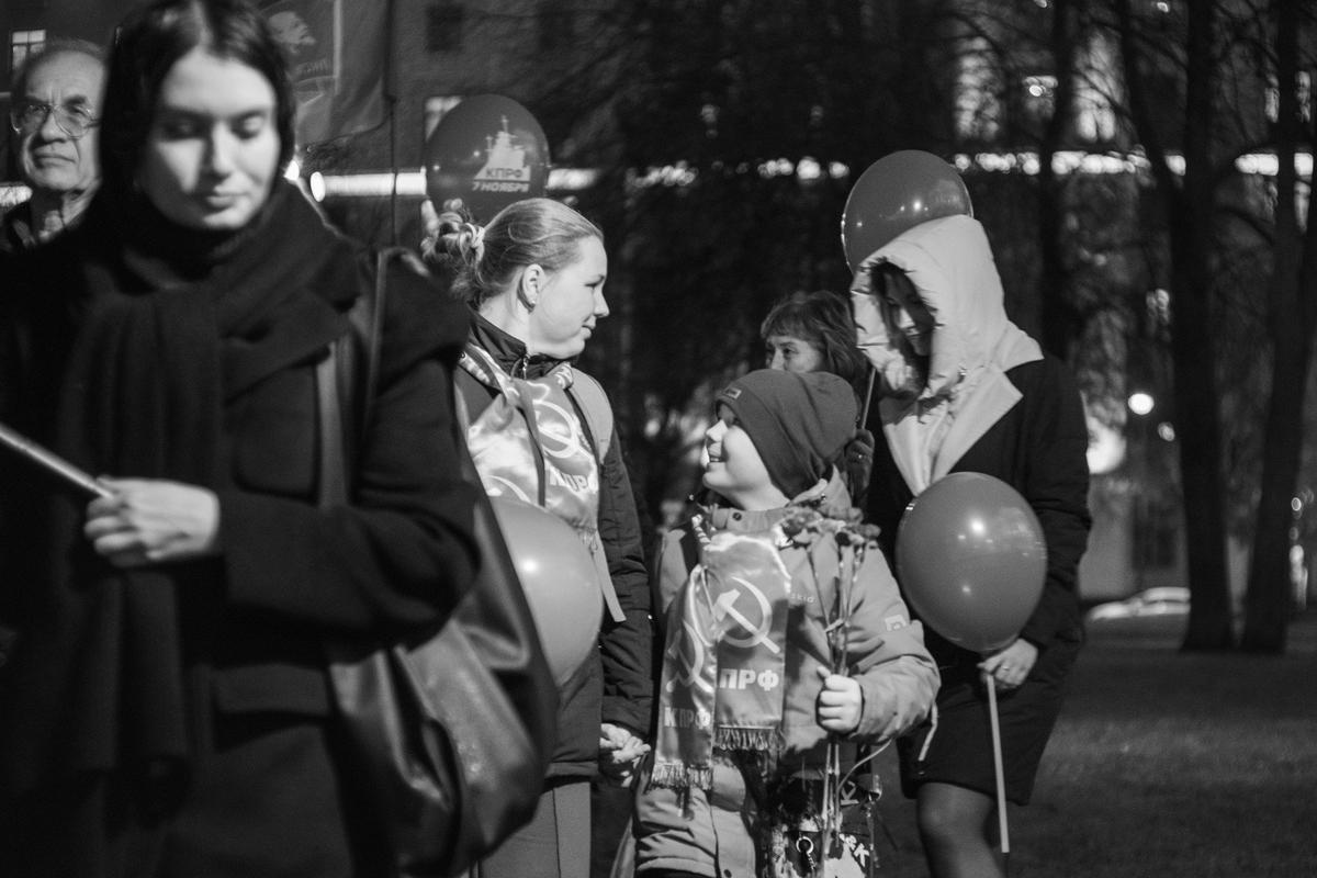 Традиционная акция коммунистов вечером 7 ноября прошла у символа Октябрьской революции — крейсера «Аврора». По наблюдениям журналистов MR7, отметить 108-ю годовщину Октября здесь собрались около трёхсот человек.