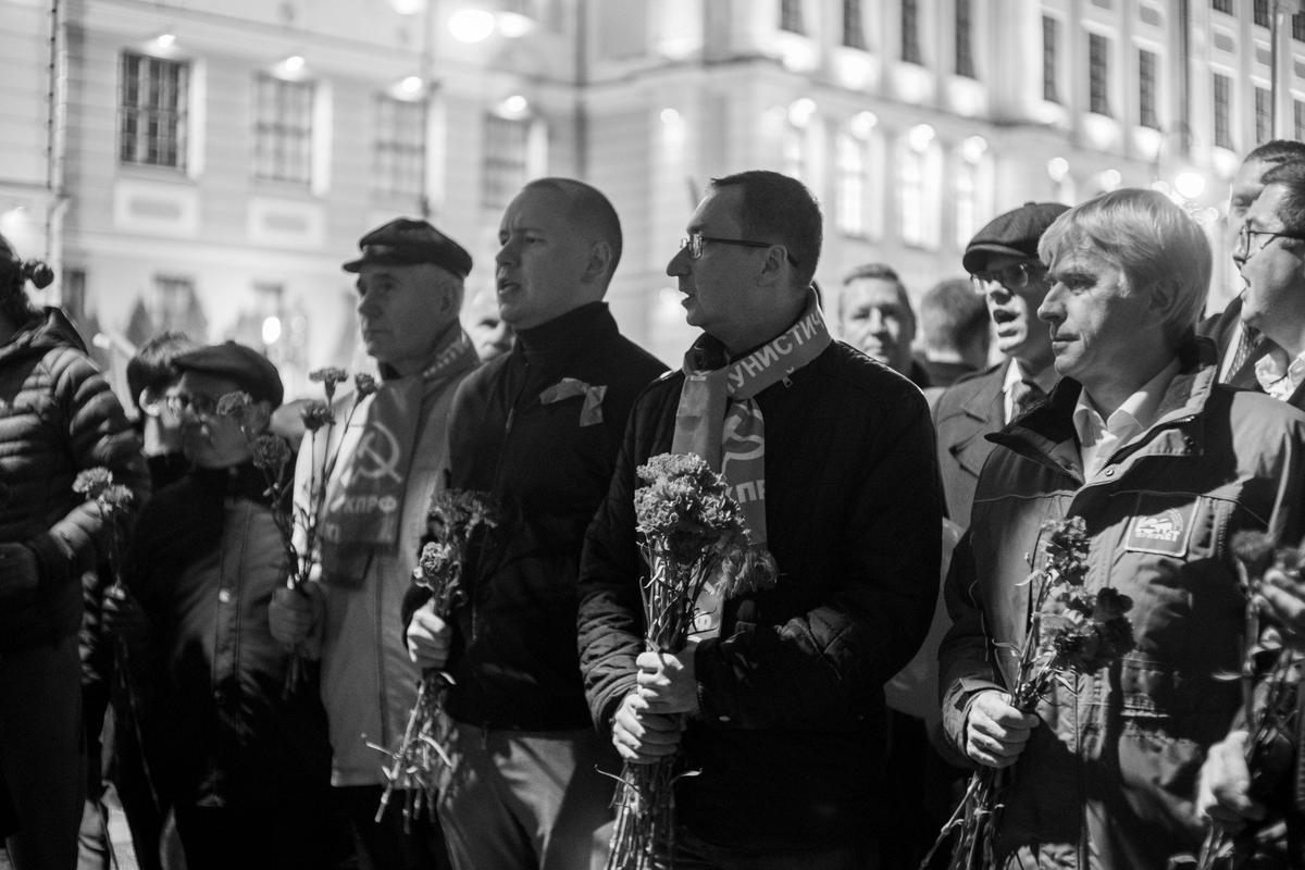 Мероприятие официально состоялось как «встреча депутатов ЗакСа» с избирателями. Первый секретарь петербургского городского отделения КПРФ, депутат парламента Роман Кононенко последние формальности с полицией улаживал перед самым началом акции. А за несколько минут до того, как зазвучали речи и песни, ответил на звонок председателя ЦК КПРФ Геннадия Зюганова.