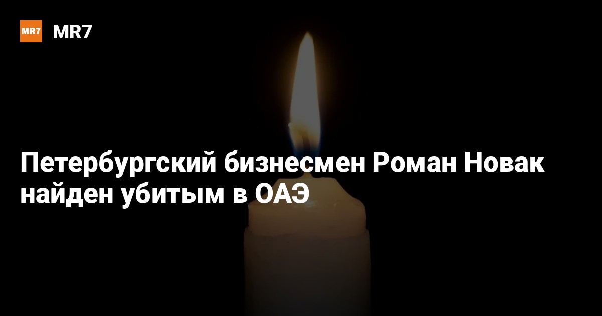 Петербургского предпринимателя Романа Новака и его супругу Анну нашли мертвыми в Объединенных Арабских Эмиратах, о чем 7 ноября пишет «Фонтанка» со ссылкой на источник в силовых структурах. Их смерть была насильственной. Около месяца назад пару похитили, у нее безуспешно вымогали деньги.