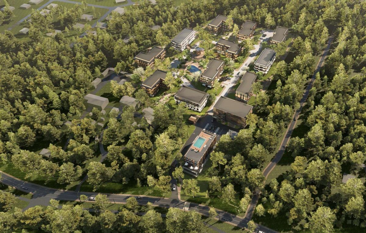 Разработкой занималось архитектурное бюро «А.Лен» по заказу компании ООО «СЗ «Ривьера Парк». В комплексе предусмотрены медицинский корпус со СПА-зоной, спальные корпуса, отдельное здание со столовой, спортивным залом и бассейном, четырехуровневая парковка и котельная. Существующий въезд с Приморского шоссе сохраняется, а историческая аллея будет не только сохранена, но и расширена. Вдоль пешеходных дорожек появятся газоны с посадкой низкорослого кустарника.