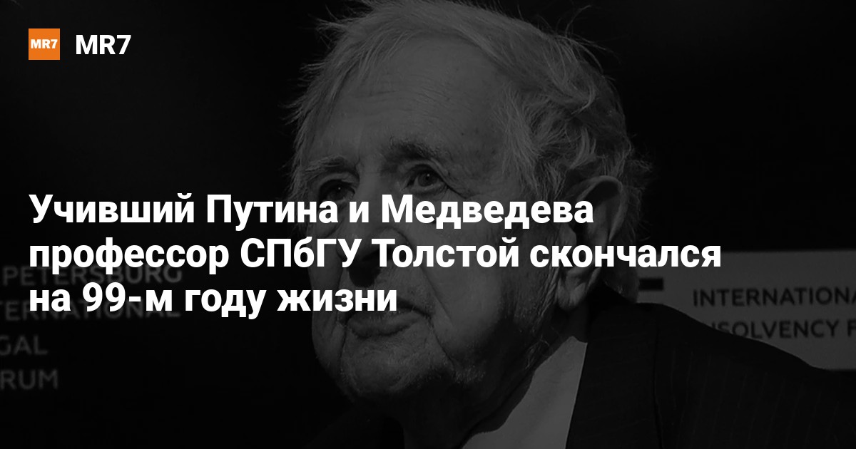 В Петербурге на 99-м году жизни скончался почётный профессор СПбГУ, академик РАН Юрий Кириллович Толстой, сообщает 10 ноября пресс-служба университета.