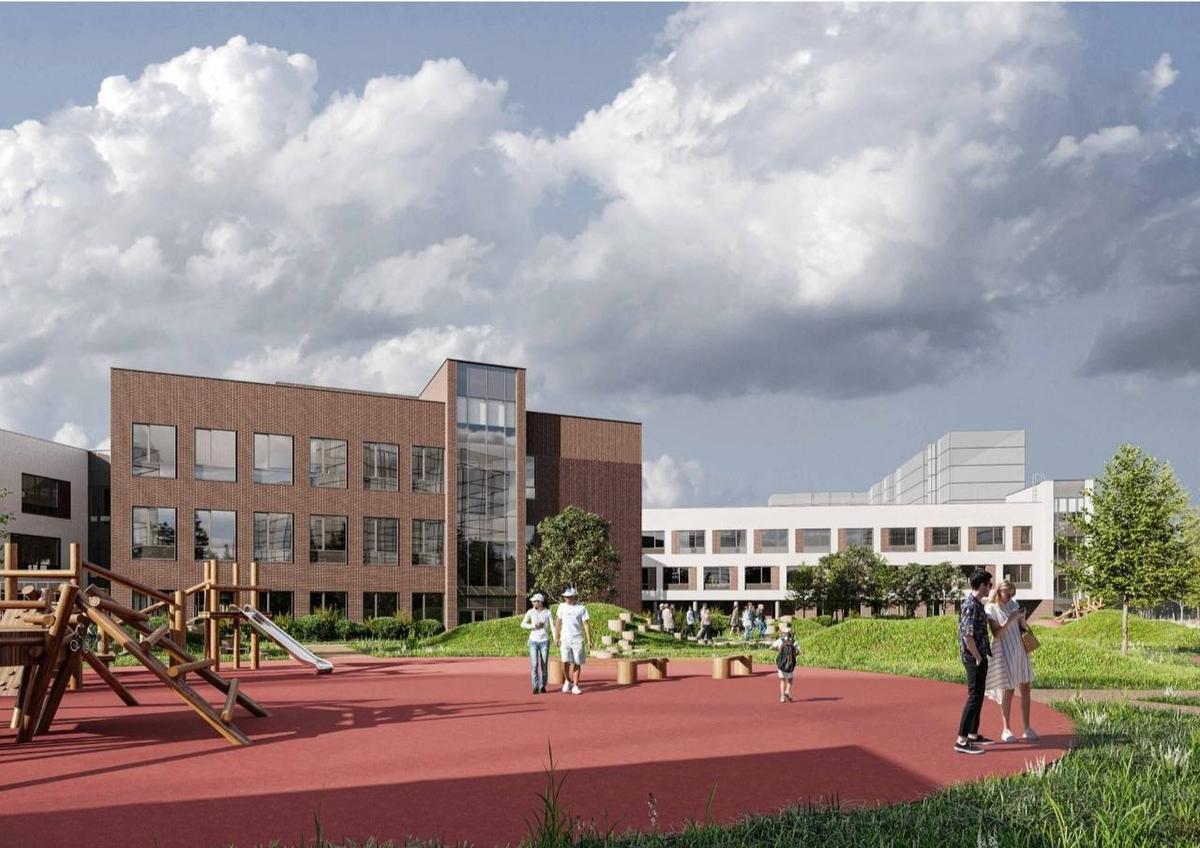 Проект предусматривает создание современных учебных пространств: инженерных и творческих мастерских, медиастудий, кабинетов для проектной работы, а также библиотеки с амфитеатром и крупного спортивного блока.