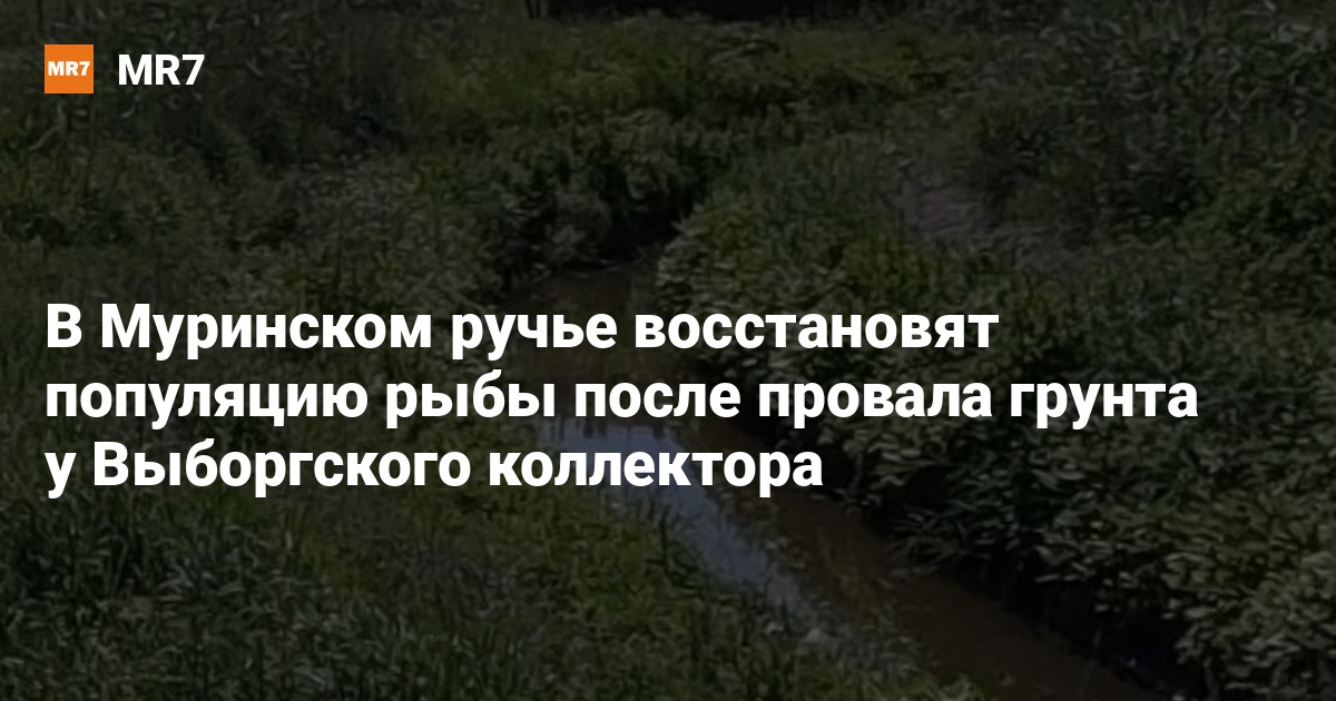 В Петербурге восстановят популяцию биологических ресурсов в Муринском ручье после провала грунта на участке Выборгского коллектора на улице Харченко, сообщает 12 ноября ТАСС со ссылкой на Водоканал.