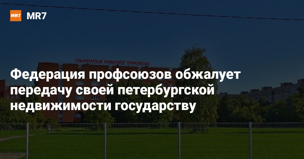 Арбитражный суд Петербурга и Ленинградской области зарегистрировал апелляционную жалобу Федерации независимых профсоюзов России (ФНПР) на решение от 23 октября о возвращении государству нескольких зданий, принадлежавших профсоюзам, жалоба была зарегистрирована 12 ноября, следует из картотеки арбитражных дел.