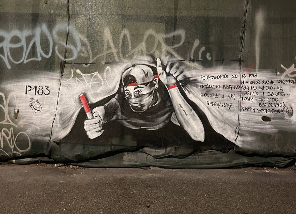 Работа, посвящённая Паше 183, появилась в минувшее воскресенье, 9 ноября. Автор отмечал, что для него работы Паши — одного из основоположников современного российского стрит-арта — имели большое значение. На его граффити Паша будто передавал новым художникам эстафетную палочку. «Эстафета» продержалась всего пару суток.