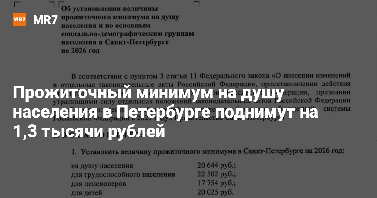 Петербургское правительство подняло прожиточный минимум на следующий год. Постановление, устанавливающее новые суммы и опубликованное на сайте Смольного, было подписано губернатором 11 ноября.