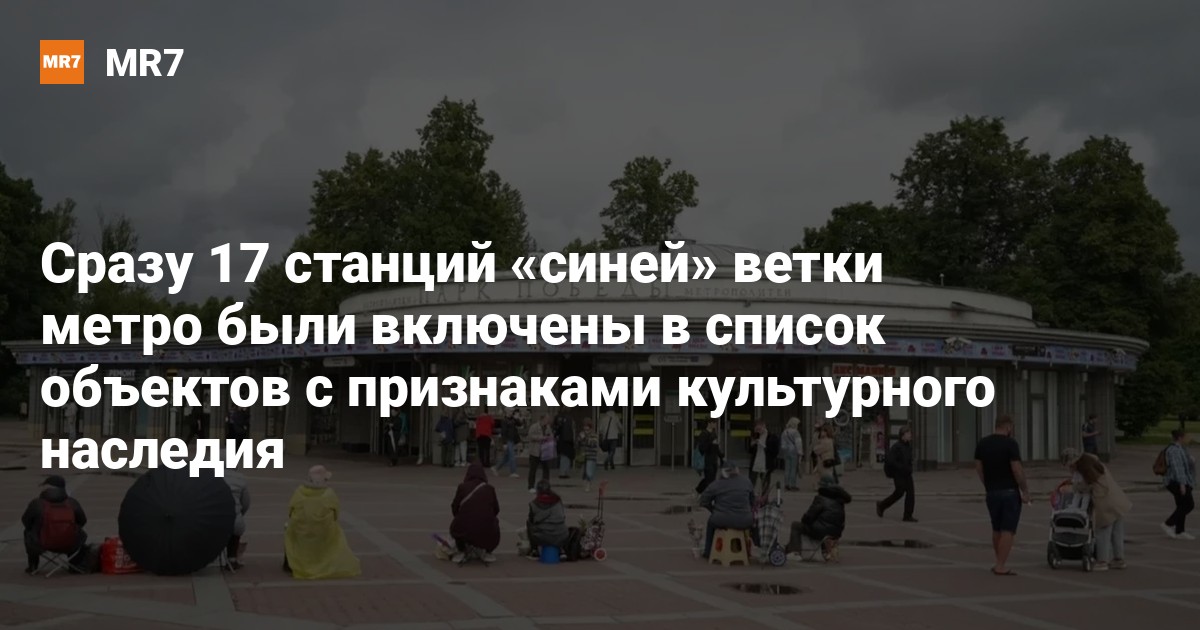 Комитет по охране памятников (КГИОП) 13 ноября внёс в список объектов с признаками культурного наследия сразу несколько станций Московско-Петроградской линии метро. Среди них: «Проспект Просвещения», «Озерки», «Удельная», «Пионерская», «Чёрная речка», «Петроградская», «Горьковская», «Невский проспект», «Сенная площадь», «Технологический институт-2», «Фрунзенская», «Московские ворота», «Электросила», «Парк Победы», «Московская» и «Звёздная», а также павильон станции «Купчино». Все станции внесены в список с формулировкой «как единый культурно-исторический объект XX века».