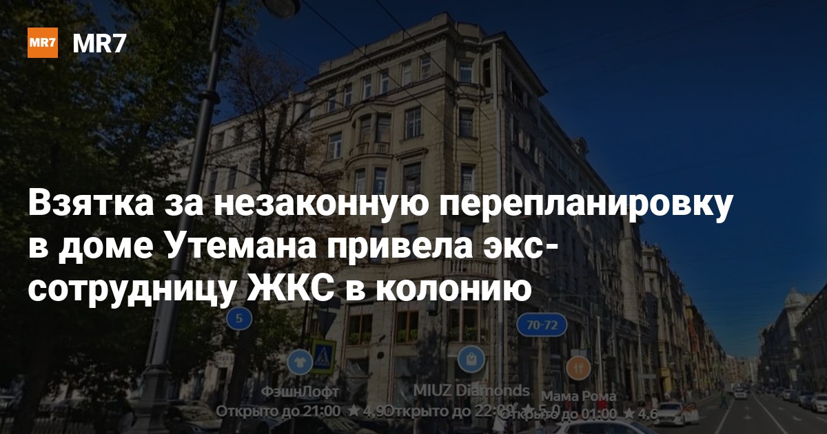 Петроградский районный суд приговорил к трем с половиной годам колонии общего режима бывшую сотрудницу ЖКС № 1 Петроградского района Юлию Барканову (Королеву). В прошлом году она позволила за взятку в полмиллиона рублей незаконно перепланировать помещения в доме Утемана (Большой проспект Петроградской стороны, 72-74). Как сообщает 14 ноября объединенная пресс-служба городских судов, 36-летнюю женщину признали виновной по части 5 статьи 290 УК (получение крупной взятки), обязав выплатить штраф в размере одного миллиона рублей.