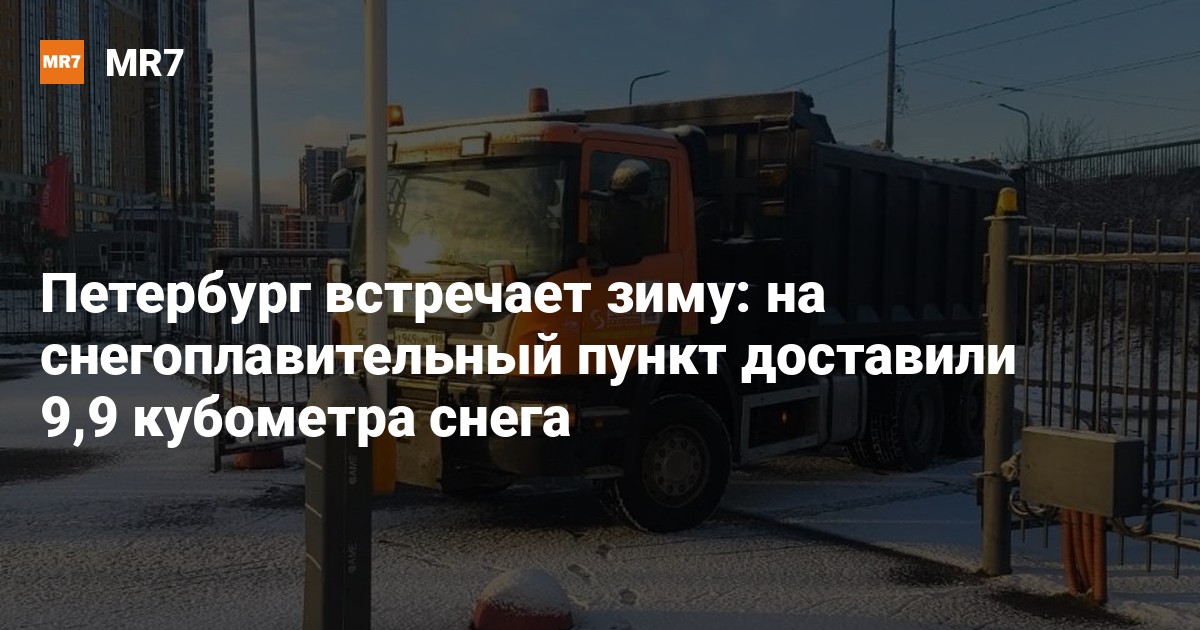 В Петербурге официально открыт зимний сезон для коммунальных служб. Первый грузовик со снегом объемом 9,9 кубометра доставлен на стационарный снегоплавильный пункт на Кушелевской дороге, где снег будет растоплен и переработан, сообщает 15 ноября комитет по энергетике.