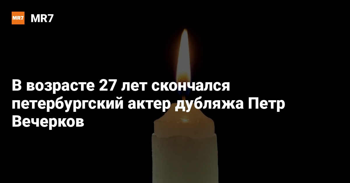 На 28-м году жизни скончался актер дубляжа Петр Вечерков. Это случилось накануне, 15 ноября. Известие о смерти петербуржца появилось днем позже в сообществе «Русский дубляж». Подробности трагедии пока не раскрываются, но известно, что артист в этом году сильно болел.