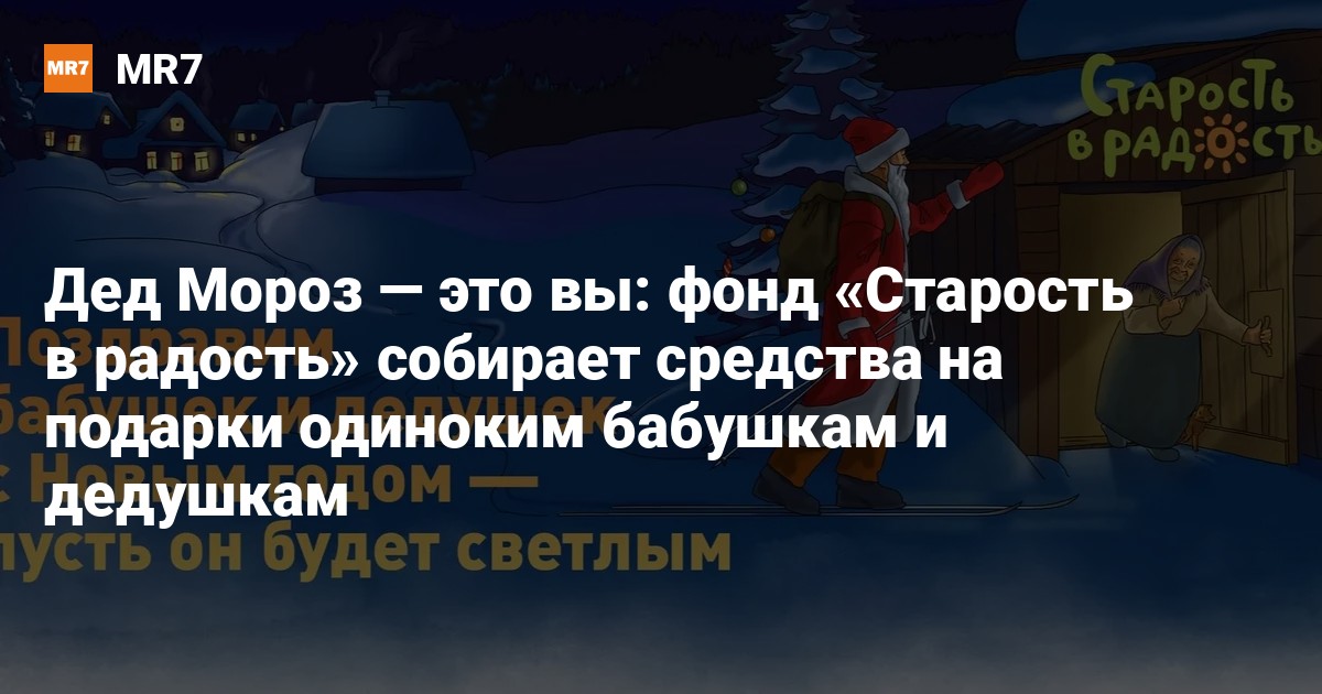 В фонде помощи пожилым людям точно знают, сколько подарков должен доставить их Дед Мороз с помощниками: 104 710. Столько подопечных организации в разных регионах России — это и одинокие старики в далёких деревнях и заснеженных сёлах, а также пациенты интернатов и гериатрических отделений стационаров. Большинству из них не от кого ждать подарков.