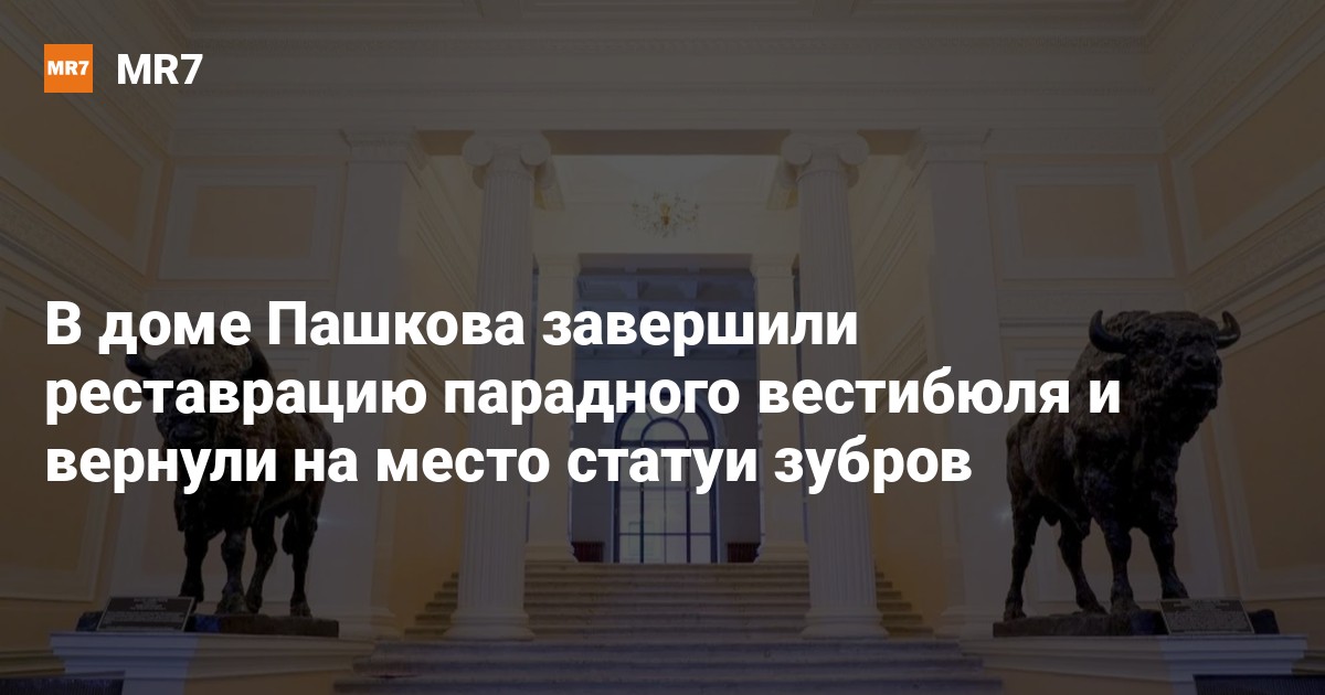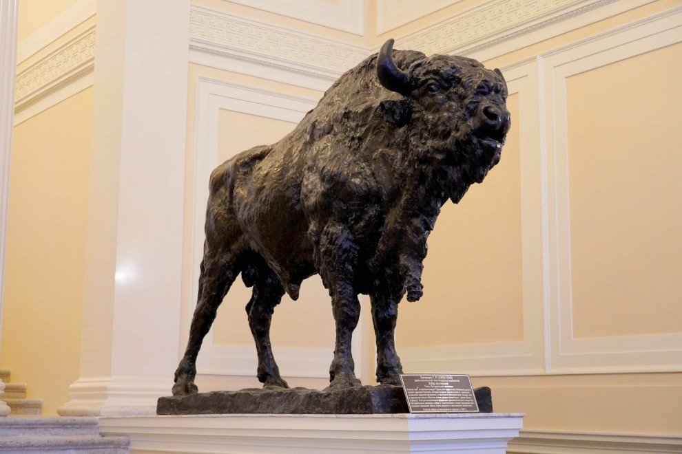 В Петербурге полностью завершили реставрацию парадного вестибюля дома Пашкова на Литейном проспекте,39 (По этому же адресу находится офис Всероссийского общества охраны памятников истории и культуры). Главной новостью стало возвращение двух статуй зубров в натуральную величину — ключевых элементов исторического интерьера. Специалисты восстановили сложное многослойное покрытие, благодаря которому гипсовые фигуры снова выглядят как выполненные из бронзы. Об этом 17 ноября сообщили в пресс-службе администрации губернатора Петербурга.