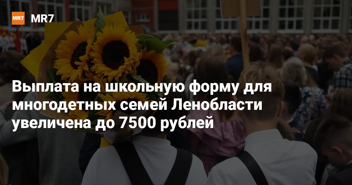 В Ленобласти ежегодная региональная выплата на школьную форму и канцелярию для многодетных семей увеличена до семи с половиной тысяч рублей. Ранее размер пособия составлял 4564 рубля, то есть сумма выросла более чем в полтора раза.