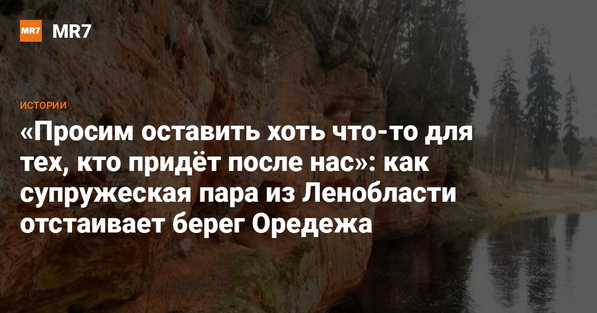 Река Оредеж протекает через три района Ленобласти и почти 50 поселений, в числе которых и посёлок Сиверский под Гатчиной. Местные жители особенно дорожат обрывистыми красными песчаными берегами, уникальной системой пещер и уже несколько лет боятся потерять к ним доступ из-за действий властей. Почти год за берег Оредежа в суде боролись Аркадий и Марина Школьниковы — супружеская пара из Сиверского.