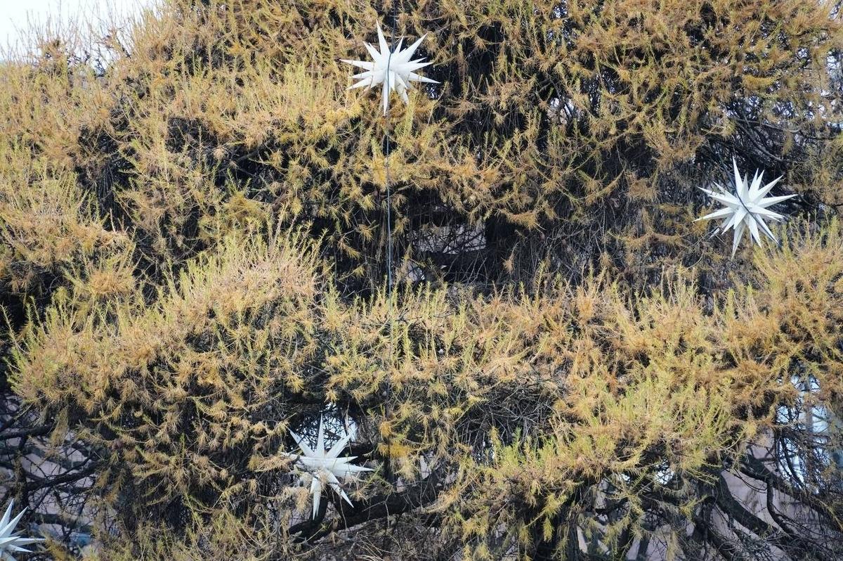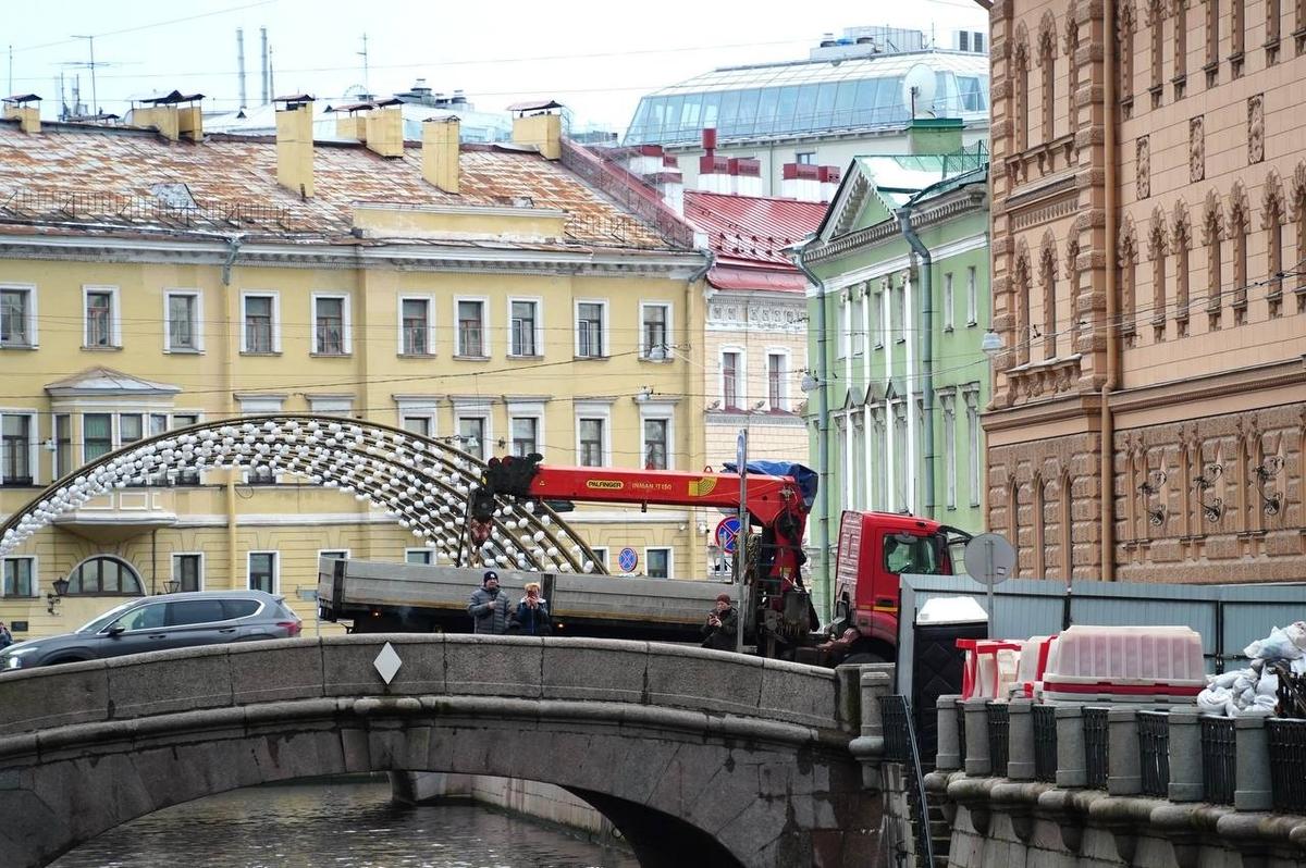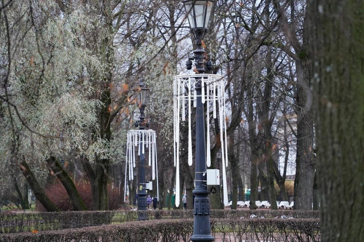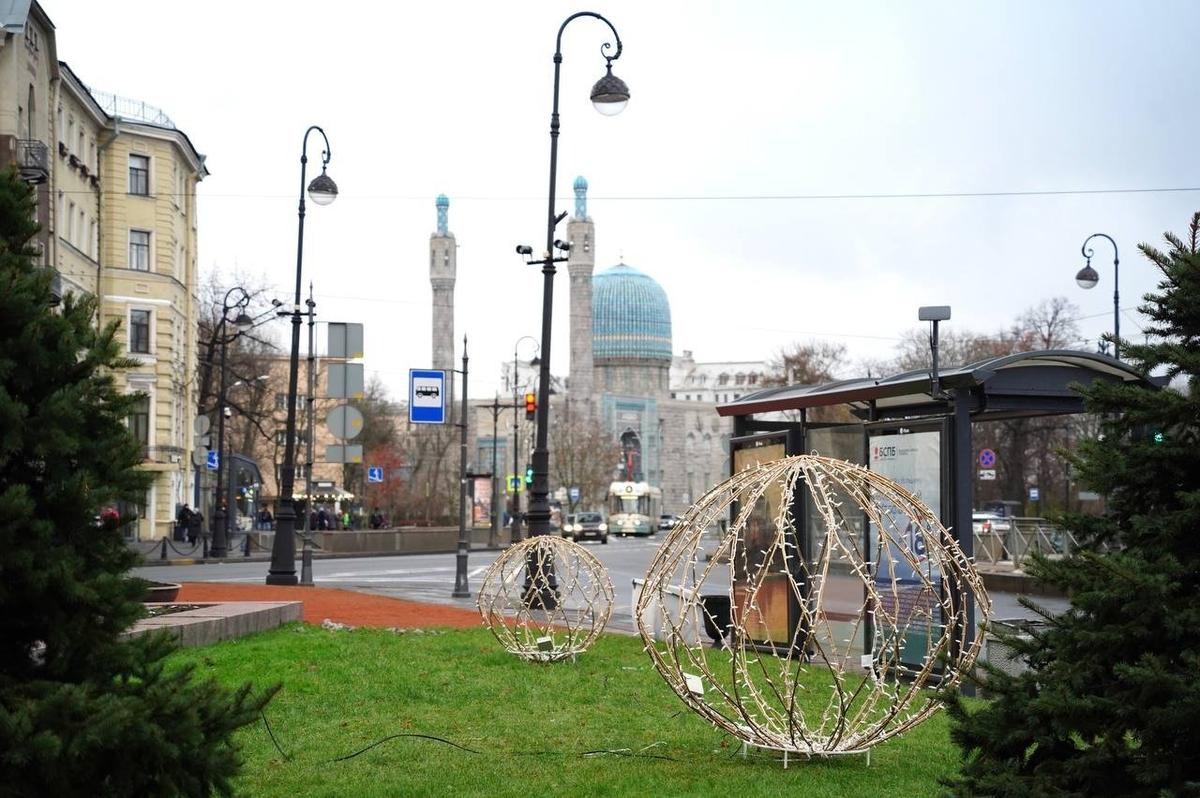 Несмотря на совсем не новогоднюю погоду, Петербург постепенно облачается в новогодний наряд и готовится встречать праздник. Стиль украшений в этом году остался таким же, как и в прошлом.
