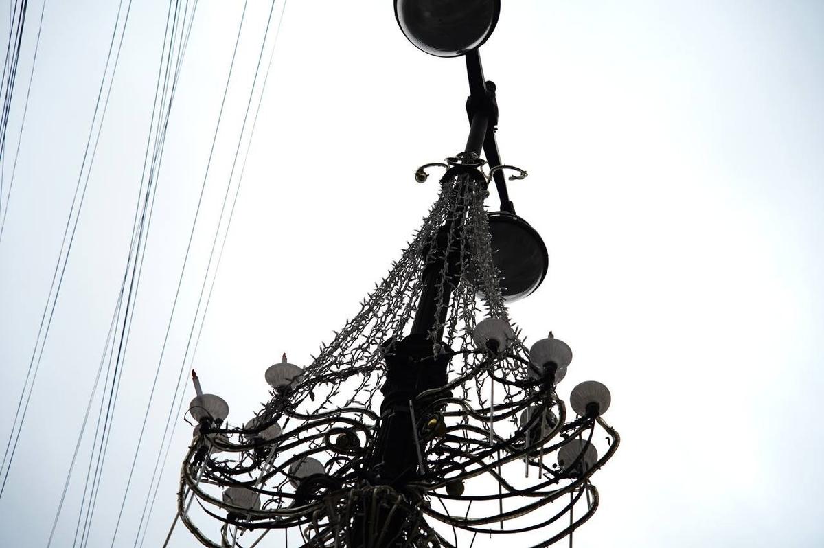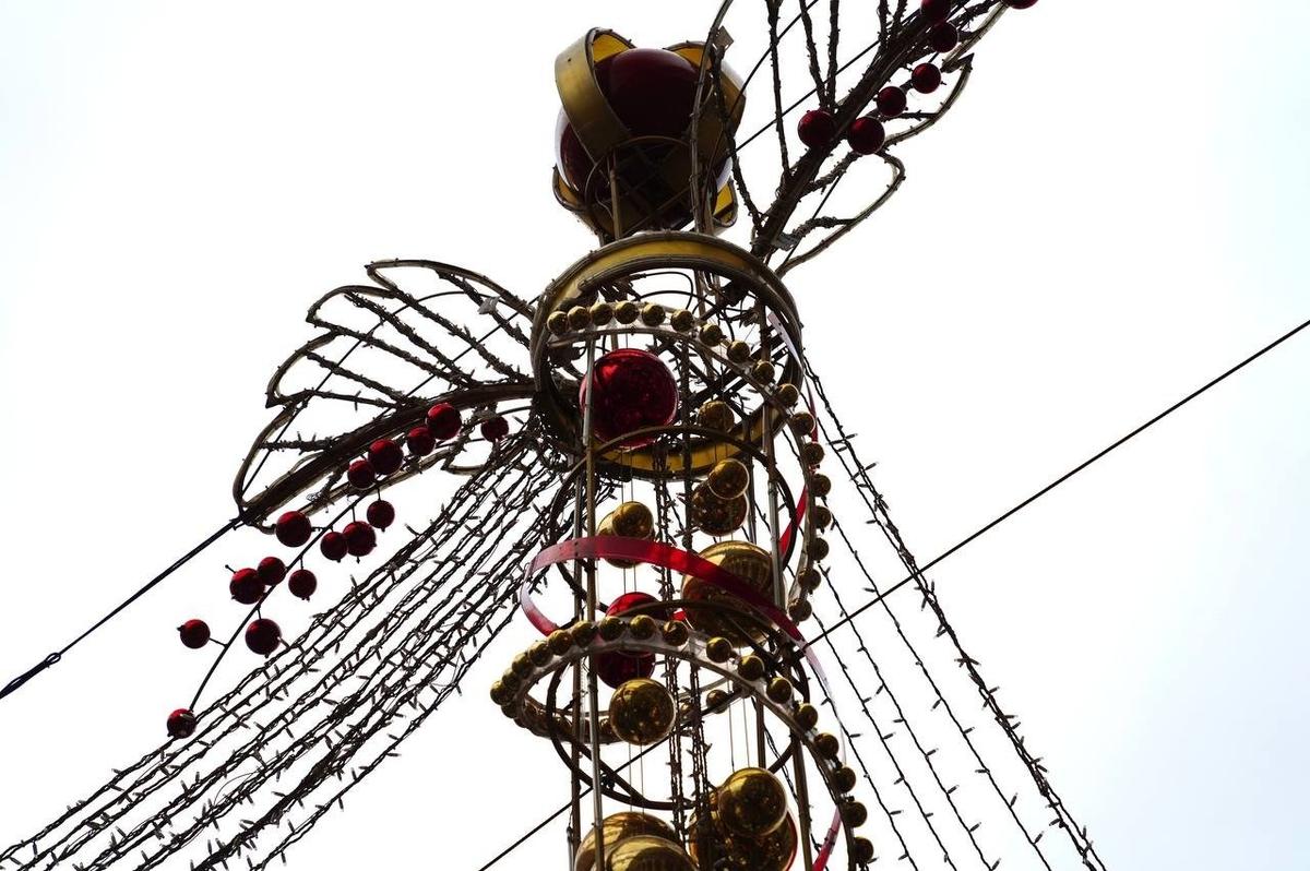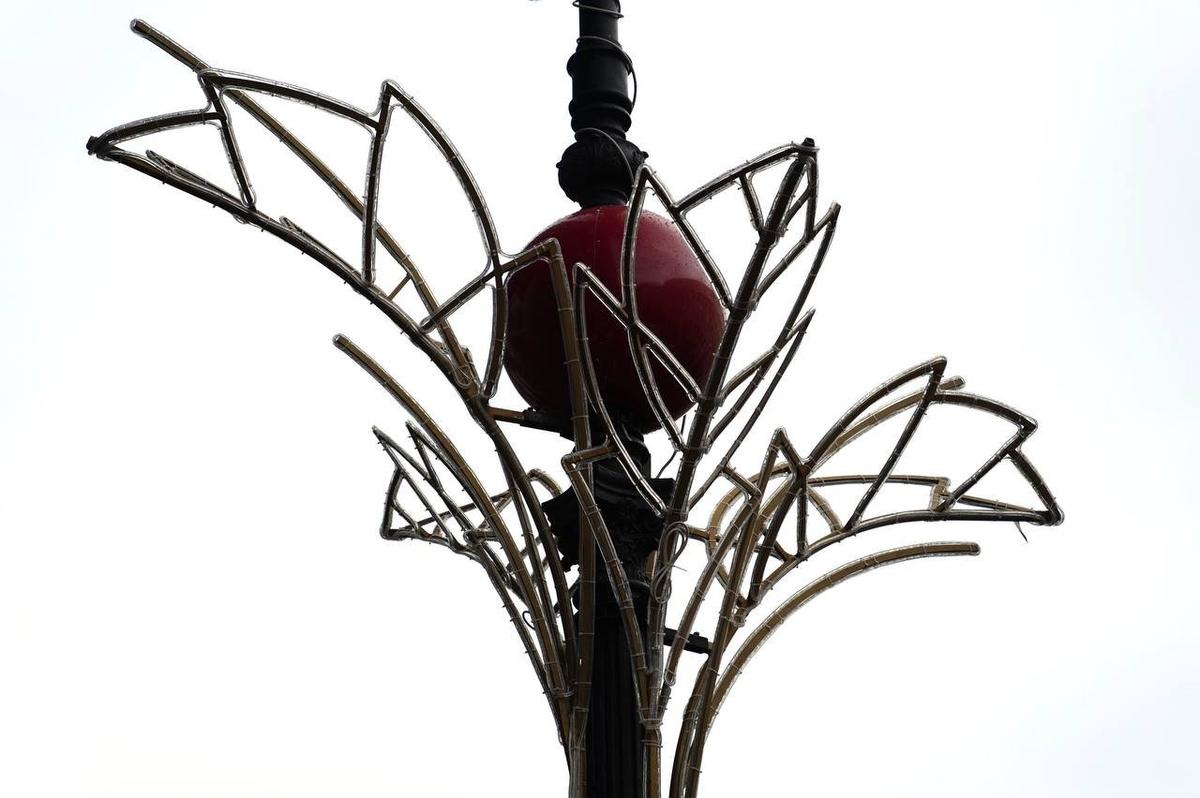 Так, например, на Невском проспекте снова водрузили «корону», а фонари украсили большими красными шарами и гирляндами.
