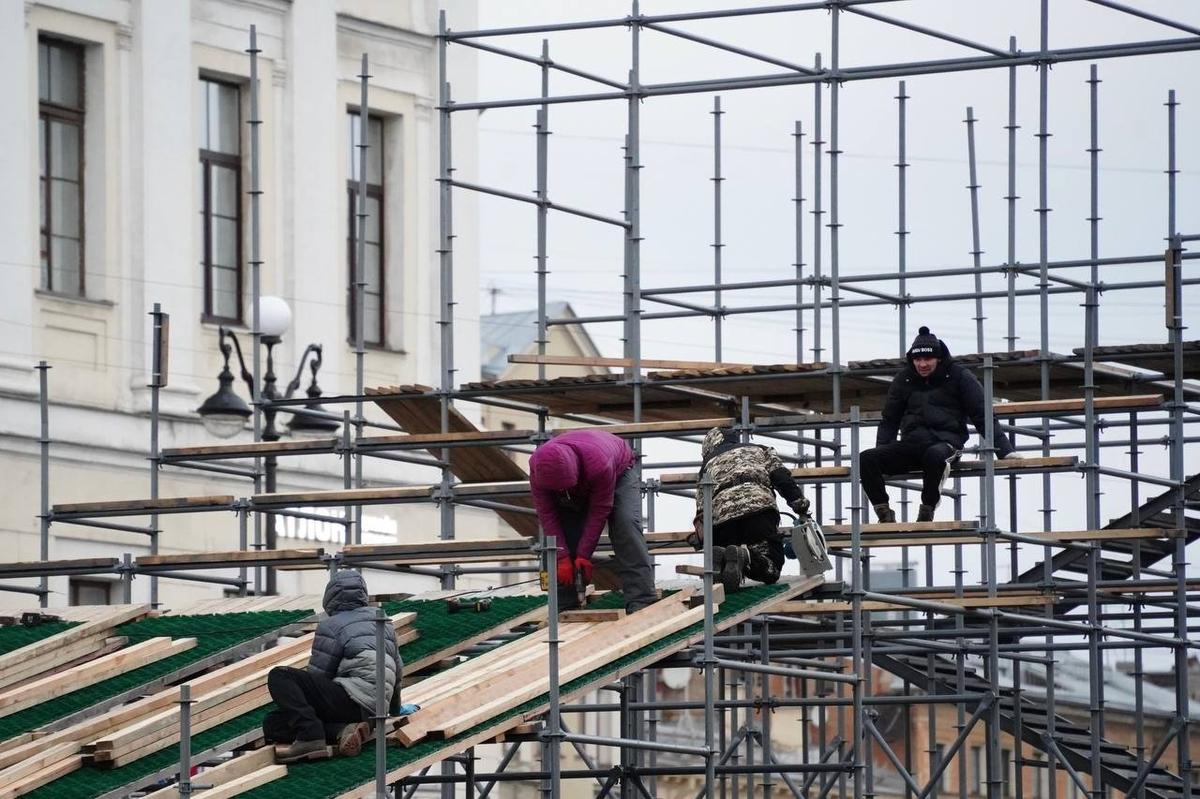 На Московской площади сейчас ведут подготовку к Рождественской ярмарке, которая будет работать с 13 декабря 2025 года по 11 января 2026 года. Работать она будет с 12 до 21 часа (исключение — 31 декабря и 1 января).