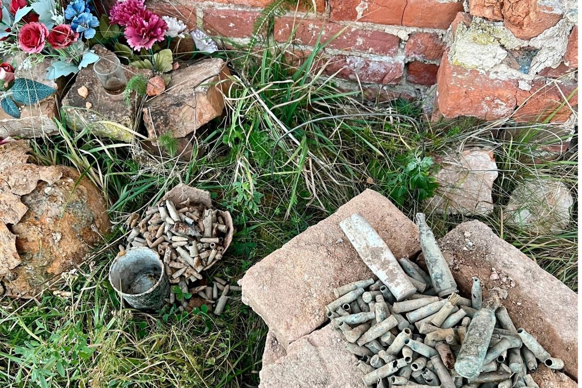 Каски и пули приносят к «стеле». Фото: предоставлено местной жительницей