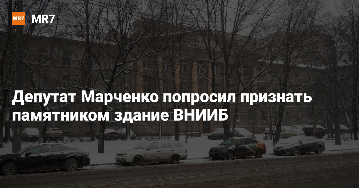 Избранный от Петербурга депутат Госдумы Евгений Марченко обратился к губернатору Александру Беглову с просьбой поспособствовать признанию здания ВНИИБ (2-й Муринский проспект, 49) региональным памятником. Он также выступает за отмену разрешения на застройку этого участка земли, которое компания ФСК получила в апреле 2019 года. Скан письма 25 ноября опубликован в telegram-канале парламентария.
