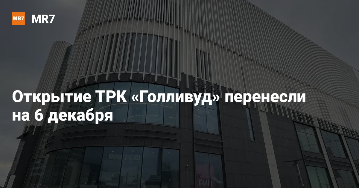 Открытие многофункционального торгово‑развлекательного комплекса «Голливуд» в Приморском районе Петербурга перенесли на 6 декабря. Ранее запуск планировался на 27 ноября, сообщает 25 ноября пресс-служба торгового центра.