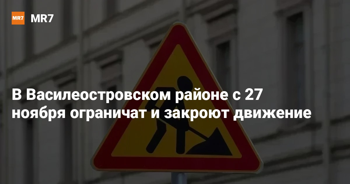 Из-за работ, которые идут с 1 ноября по 4 декабря, с 27 ноября будет ограничено движение по Большому проспекту Васильевского острова на участке от Детской улицы до 22-й и 23-й линий Васильевского острова. Под ограничения также попадают перекрёстки с 26-й и 27-й линиями Васильевского острова и Клубным переулком.