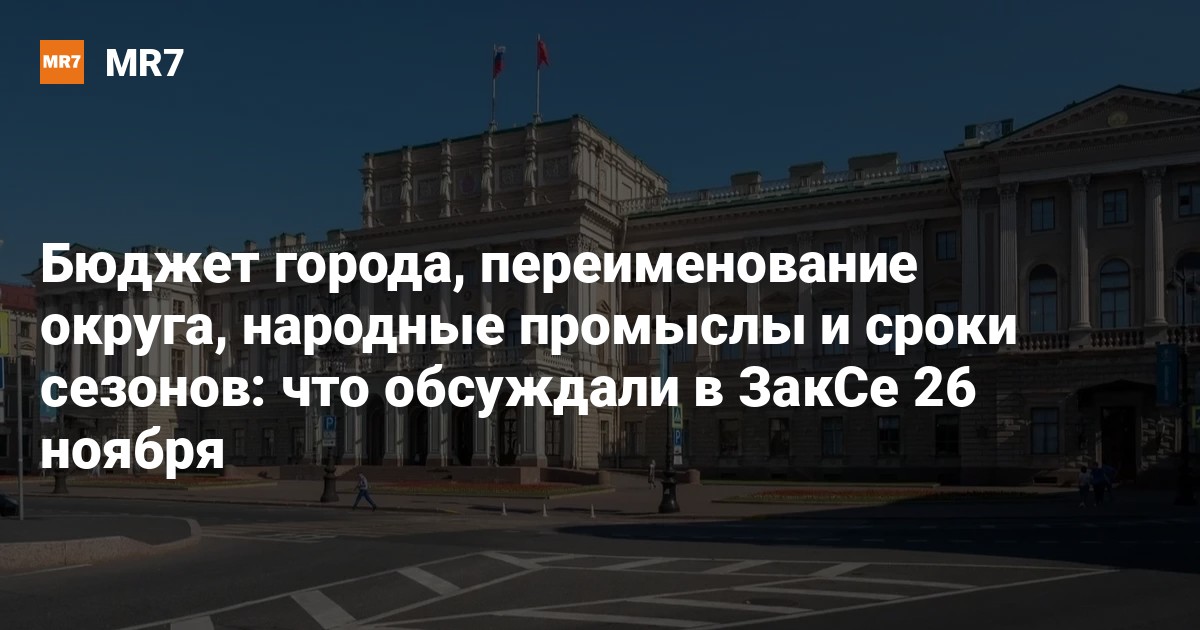 На заседании 26 ноября в Мариинском дворце петербургские депутаты рассмотрели множество законопроектов, в том числе проект бюджета на 2026-2028 годы, закон о переименовании муниципального округа № 72 и поправки в сферу народных художественных промыслов.