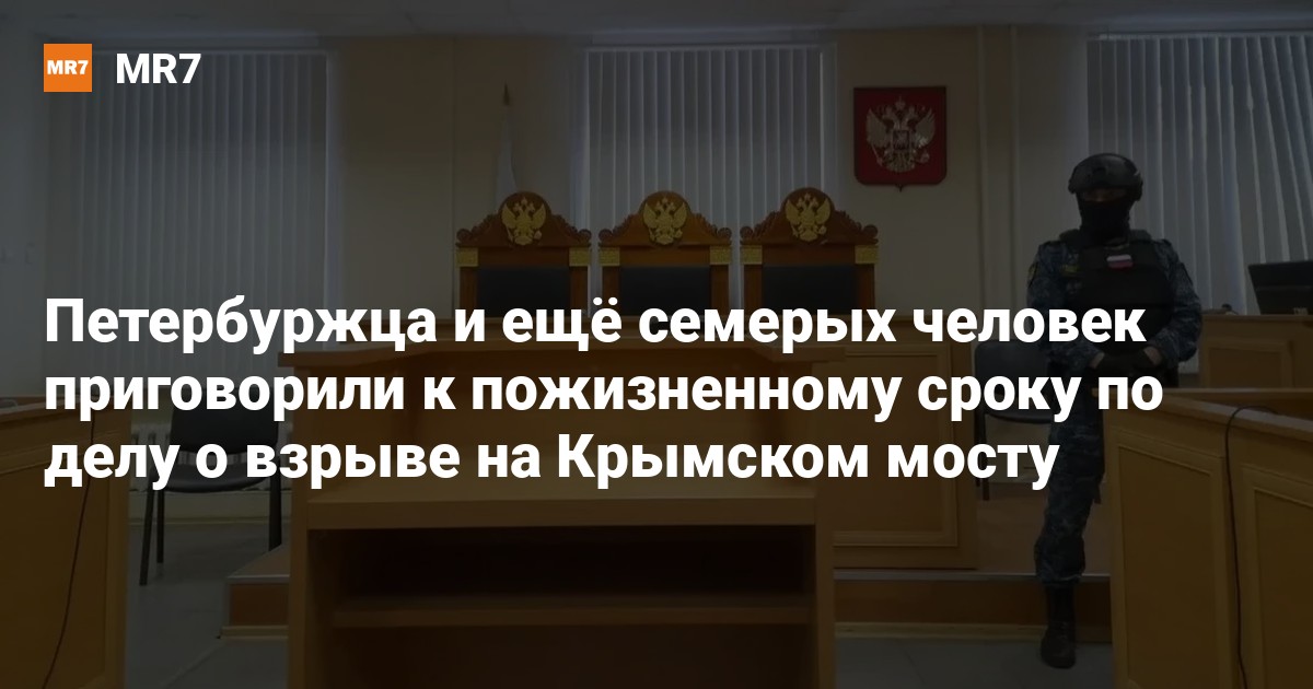 Южный окружной военный суд огласил приговор по делу о подрыве Крымского моста, который произошёл утром 8 октября 2022 года. Восемь фигурантов признаны виновными, им назначено пожизненное лишение свободы с отбыванием части срока в тюрьме. Суд также взыскал с осужденных более семи миллиардов рублей в пользу потерпевших.