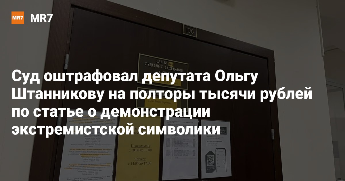 Калининский районный суд Петербурга 27 ноября на полторы тысячи рублей оштрафовал депутата ЗакСа от фракции «Яблоко» Ольгу Штанникову по статье о демонстрации экстремистской символики.