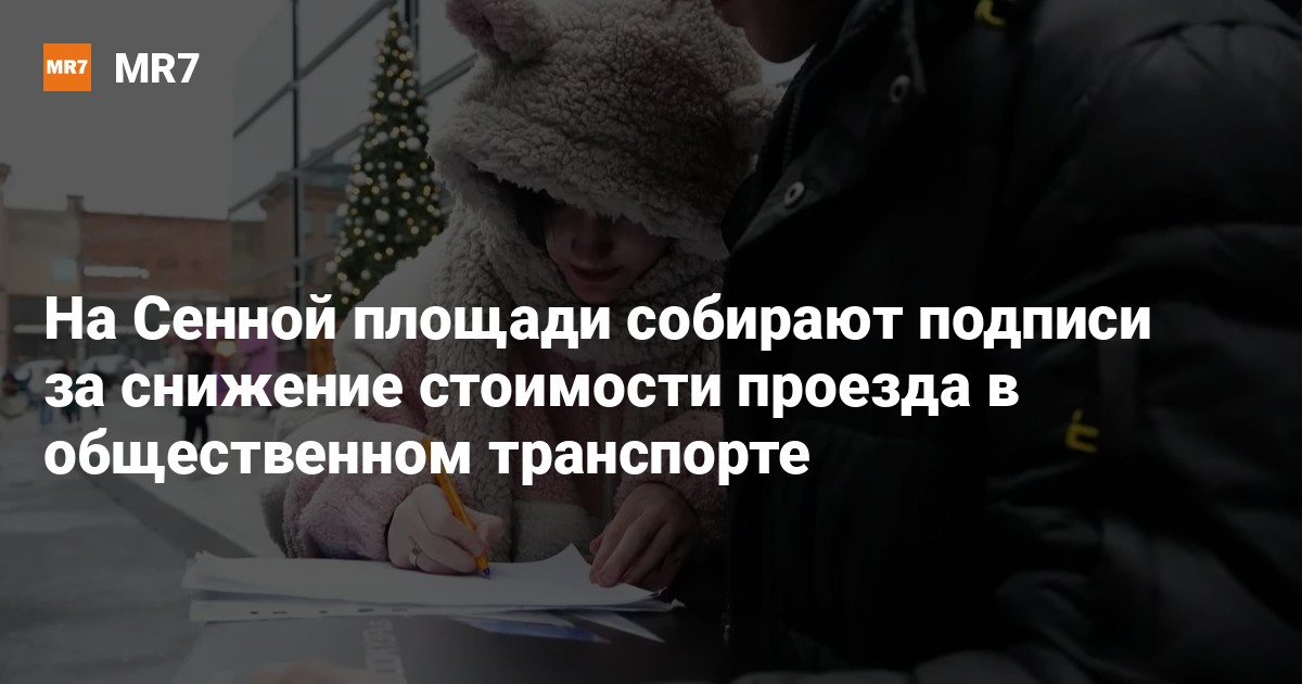 Перед станцией метро «Сенная площадь» днем 30 ноября проходит сбор подписей за снижение действующих тарифов на проезд в общественном транспорте.