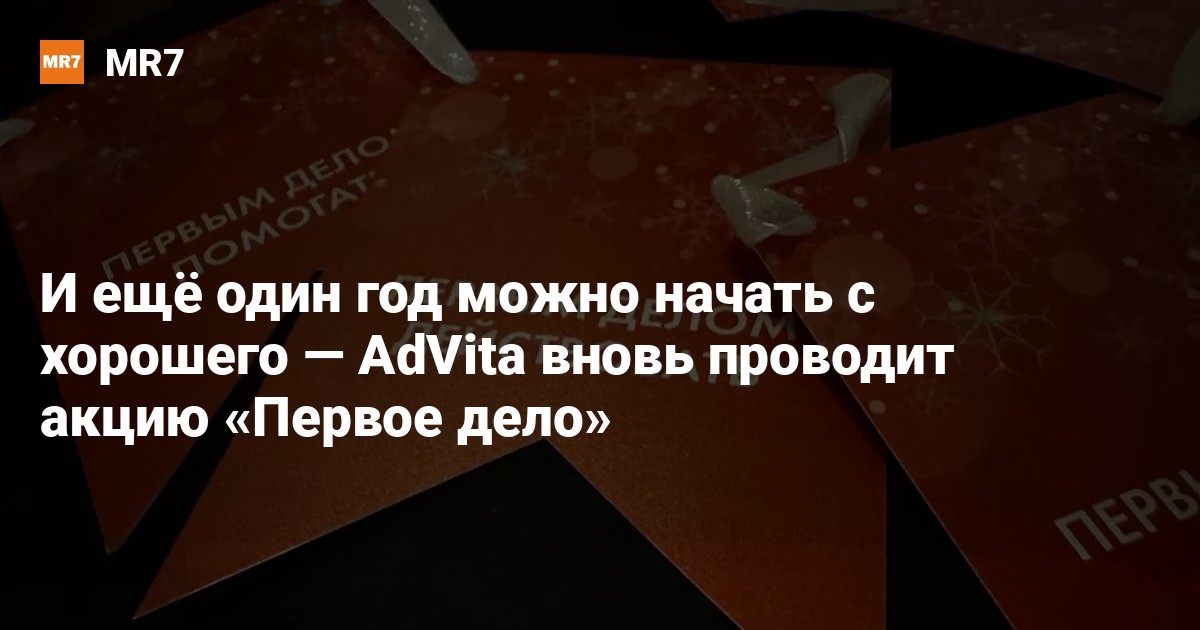 1 декабря фонд AdVita объявляет старт новогодней благотворительной акции «Первое дело Нового года», благодаря которой каждый может начать свой год с доброго поступка.