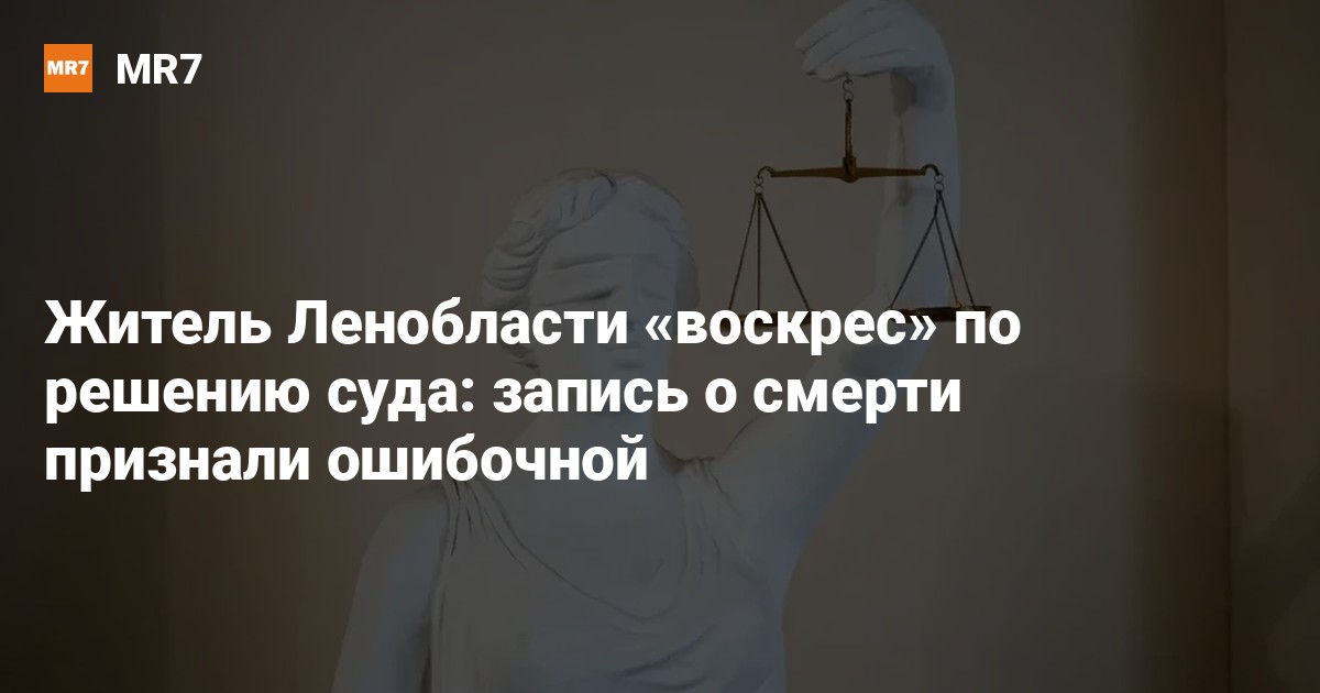 Житель Ленобласти Евгений оказался «мертвым» по документам после ошибки отдела регистрации актов гражданского состояния. Суд в Петербурге разобрался в ситуации и постановил изменить запись акта о смерти. Об этом 1 декабря сообщила руководитель объединённой пресс-службы судов Петербурга Дарья Лебедева.