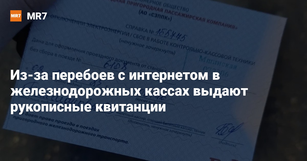 Перебои с интернетом, наблюдаемые в Петербурге и Ленобласти 2 декабря, сказались на работе железнодорожных вокзалов. В пригородных кассах пассажирам выдают не билеты, а справки, подписанные от руки.