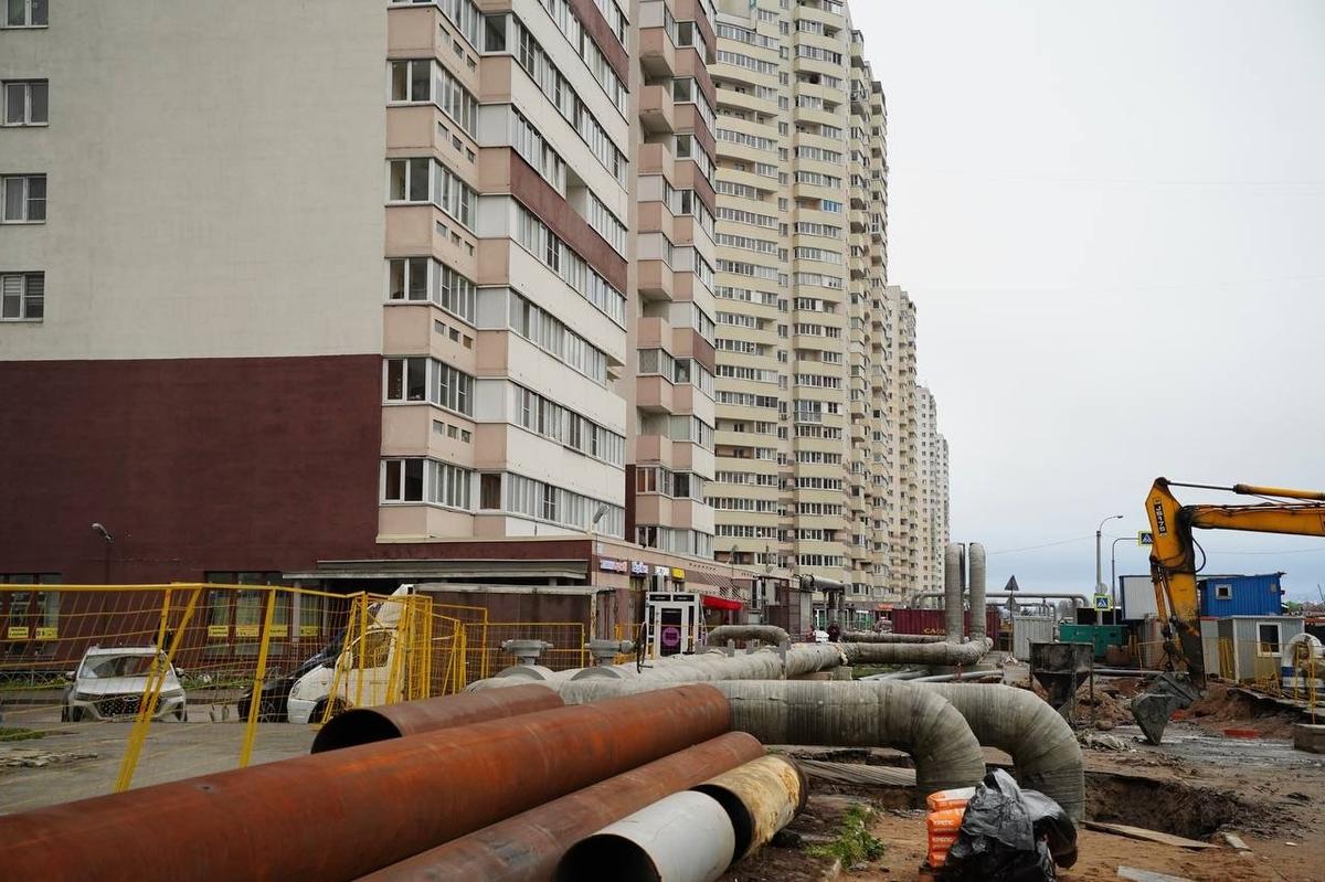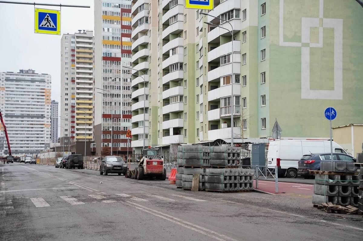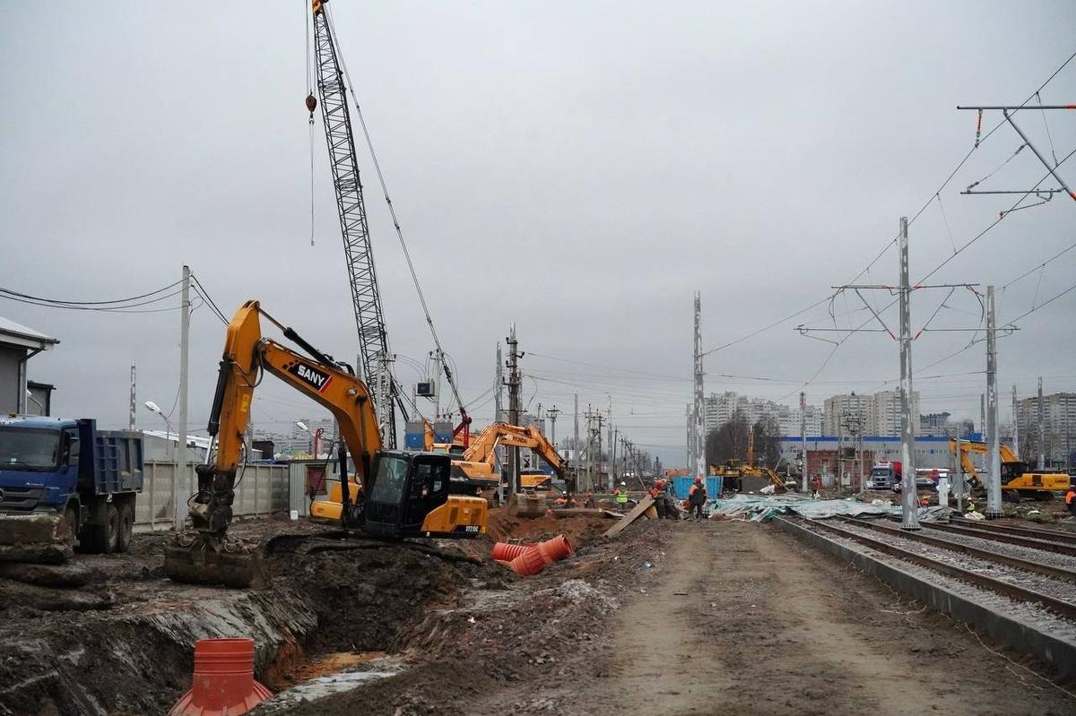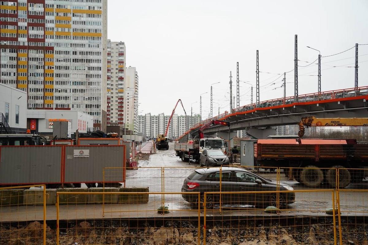 Параллельно Новгородскому проспекту идёт другая асфальтированная полоса. До остановки «Школьная улица», согласно геометке, около ста метров, но ни на машине, ни пешком до неё не добраться. По рельсам вдоль и поперёк ходят строители, по сторонам работают экскаваторы, а под ногами хлюпает размытый грунт.
