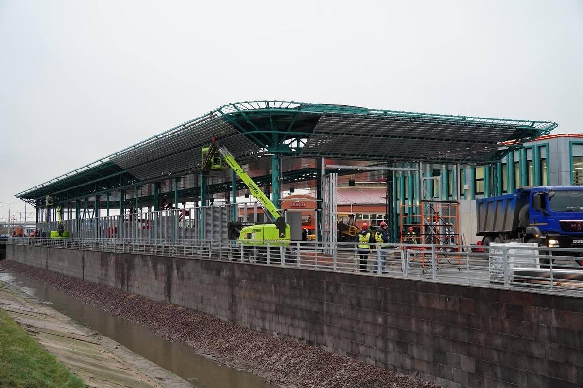 В Купчино у «вокзала» уже уложили разноцветный асфальт, чтобы пассажиры могли ориентироваться в направлении движения. Бирюзовый укажет на Шушары, оранжевый — на то, что дальше дороги нет.
