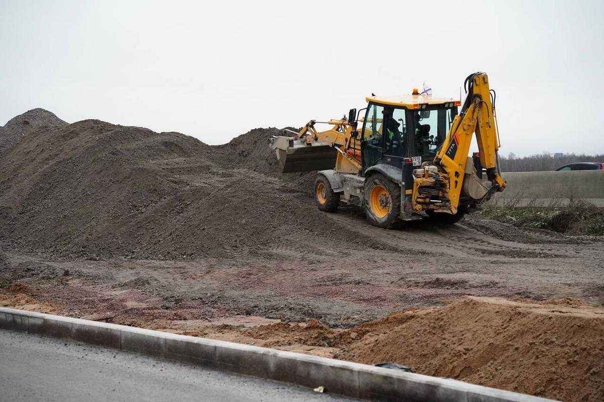 Самого павильона здесь пока нет, но место под него готово: бордюр поставлен, асфальт уложен и выровнен. С другой стороны, за пределами пока только воображаемой остановки — разбитые дороги и горы стройматериалов.