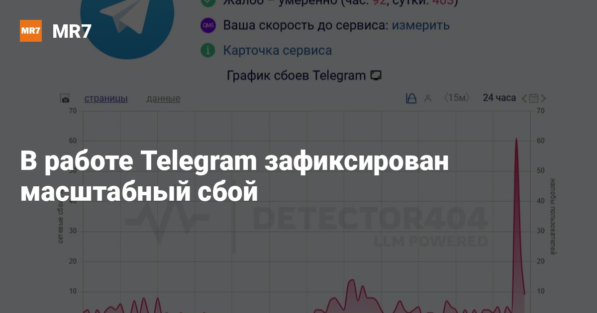 В работе мессенджера Telegram был зафиксирован сбой. Количество жалоб пользователей, согласно ресурсу Downdetector, за последний час превысило 90, а всего за сутки на работу мессенджера пожаловались более 400 пользователей.