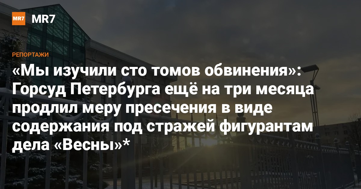 В Горсуде 3 декабря меру пресечения для фигурантов молодёжного движения «Весна»* в виде содержания под стражей в очередной раз продлили. Шестеро молодых людей останутся в СИЗО до 17 марта 2026 года.
